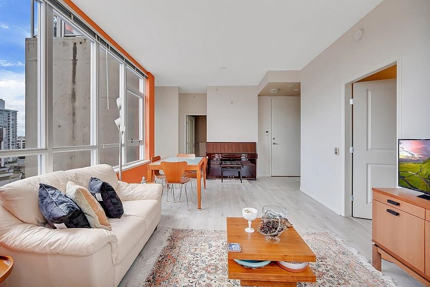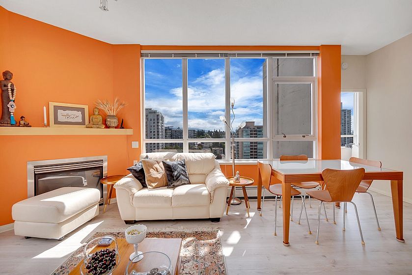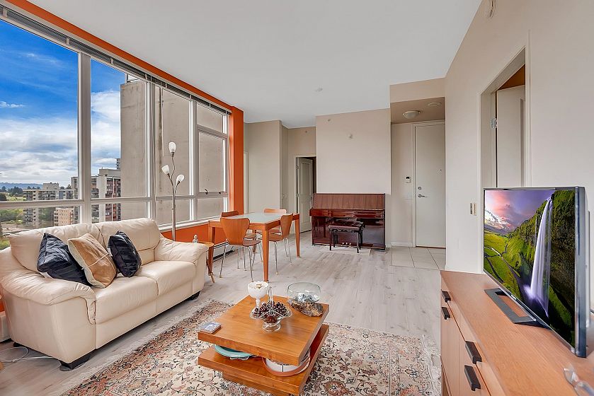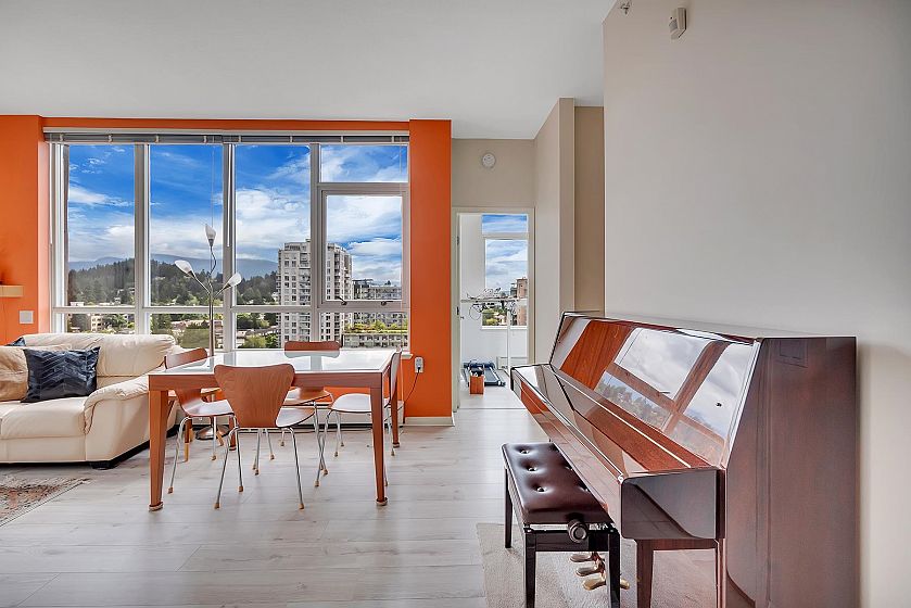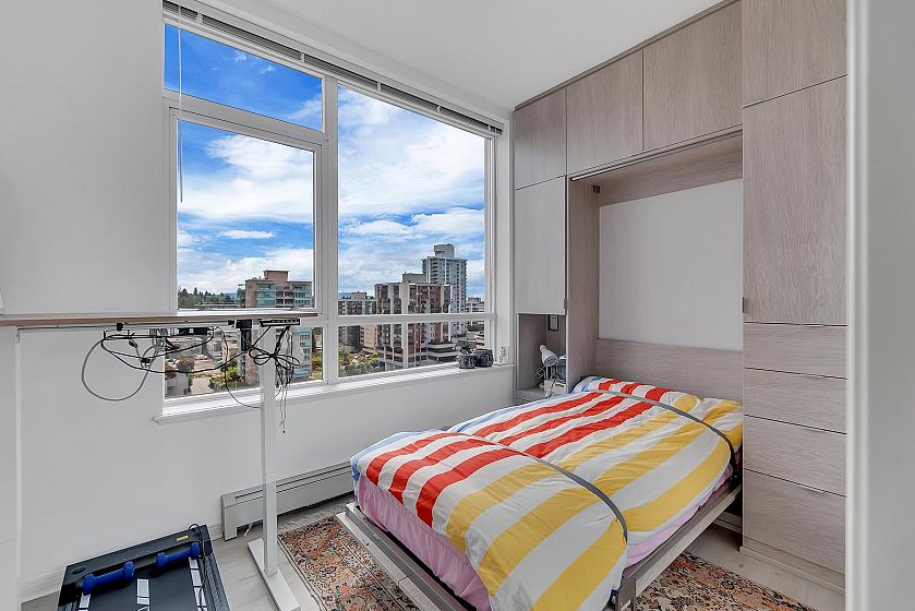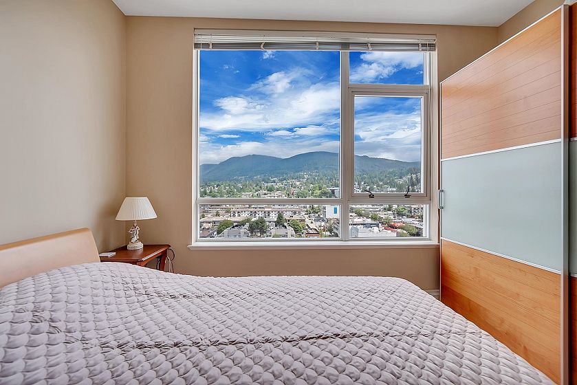 The Symphony in the heart of Central Lonsdale - a sub-penthouse 2-bed 2-bath unit for the first time on the market! This NE corner home offers 810 sq ft of living space, 9'3" ceiling height, Murphy bed by the California Closet in the bedroom, and beautiful views of the North Shore mountains and city from all windows! It's conveniently located close to Lonsdale restaurants, shops, banks, cafes, and parks. With only 4 units on this floor, it offers a private and exclusive atmosphere for discerning downsizers or first-time buyers. The bonus is a HUGE PRIVATE STORAGE ROOM and 1 parking stall. Gas, heat, and hot water are included in strata fees. Don't miss this exceptional opportunity!