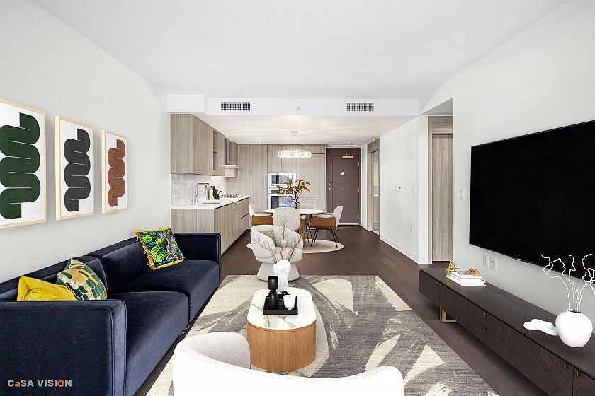 Welcome to the prestigious Arc by Concord Pacific, featuring this rarely available sub-penthouse residence. Offering 2 bedrooms plus a versatile den. Enjoy breathtaking, unobstructed views of the city skyline and waterfront, complemented by air conditioning, heating, and hardwood flooring throughout. The luxurious bathrooms are finished with full marble stone for a refined touch. The unit includes one parking and one large storage room. The sky club provides resort style amenities with glass bottom pool, sauna, steam room, grand lounge, fitness center & 24H concierge. Steps to beach, shopping, marina, restaurants and etc.