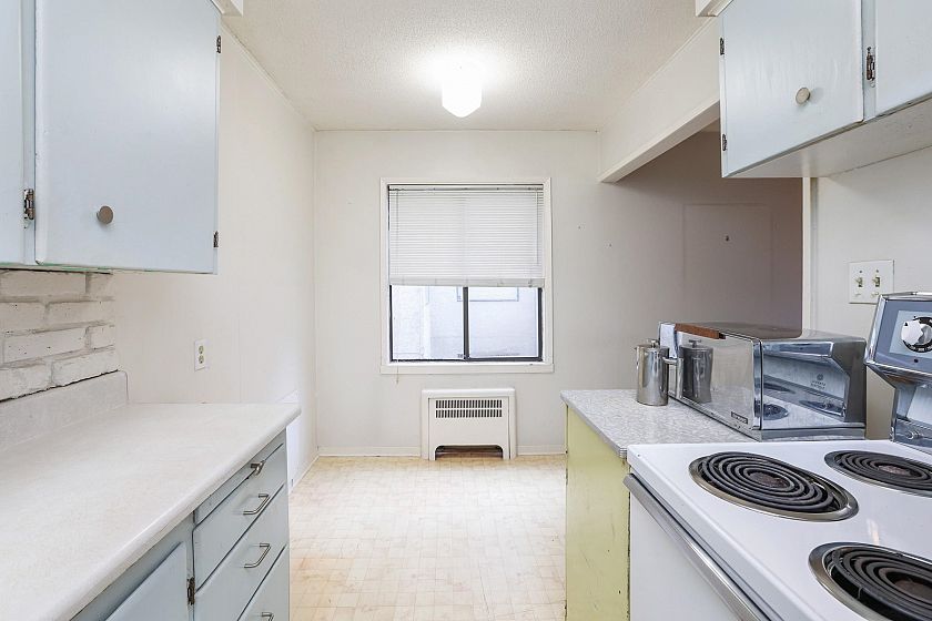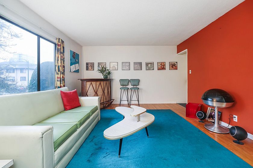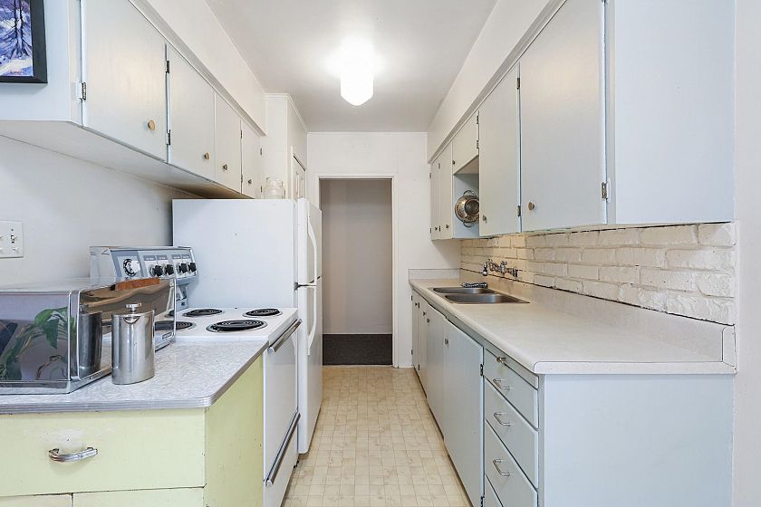 Rarely available, a mid century classic spacious 2 bedroom suite in Kingsmere Manor. Enjoy the Fairview West Side lifestyle literally steps to VGH. This building is in great shape for its age and this home is very large, spacious and chic/retro with gleaming oak hardwood floors thru-out. Tons of windows offer lots of natural sunlight thru-out make this SE corner unit a quiet, airy, bright and sunny home. This warm and friendly community-like building is just minutes to Granville Is, South Granville & Entertainment, False Creek and the new Oak / VGH Subway Station. Enjoy all the locally owned restaurants and coffee shops this neighborhood has to offer. An amazing affordable option!! Property taxes inc in maintenance fees!!
