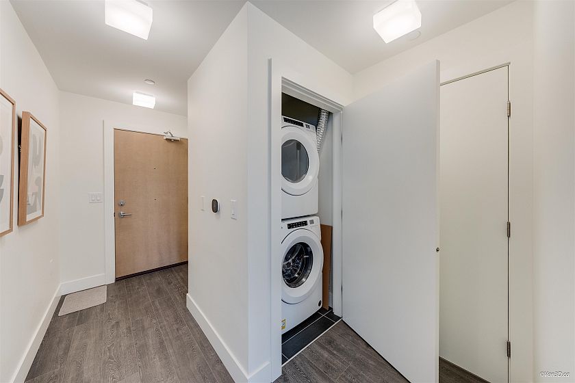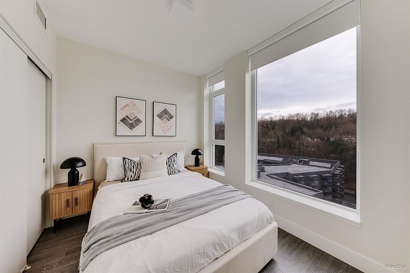 Beautifully staged, move-in ready and in mint-condition! This North-facing 2 bed + flex, 2 bath home in at the Mode - one of the tallest concrete towers in the River District area, featuring premium stainless steel appliances, quartz counters and backsplash, bedroom separation, in-floor ensuite heating, and high-efficiency heating and A/C cooling. Steps to shops, green space. Amazing resort-style amenities including concierge, hot tub, fitness centre, 2 guest suites, theater/screening room, dog wash station, bike-repair and workshop space. Unit comes with 1 Parking Stall and 1 Storage Locker.