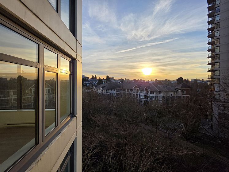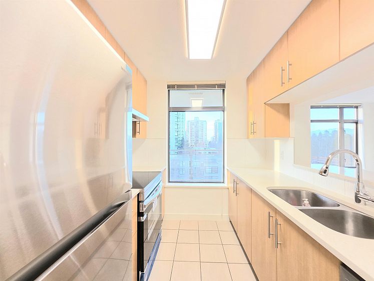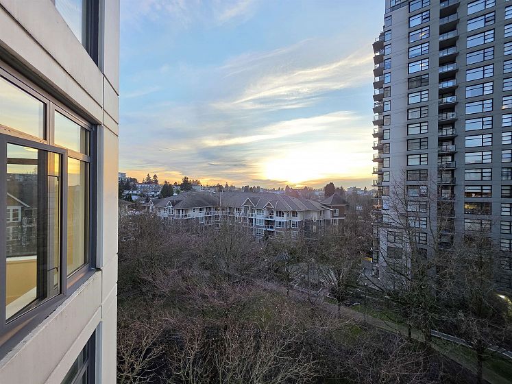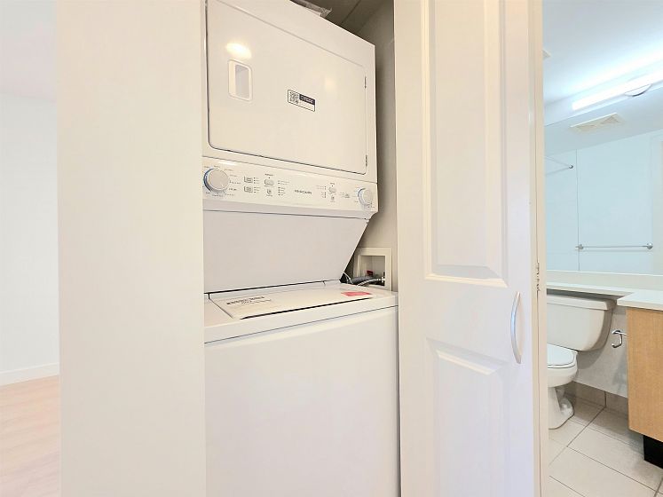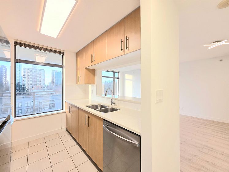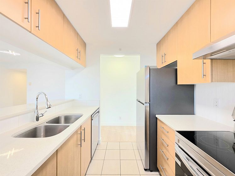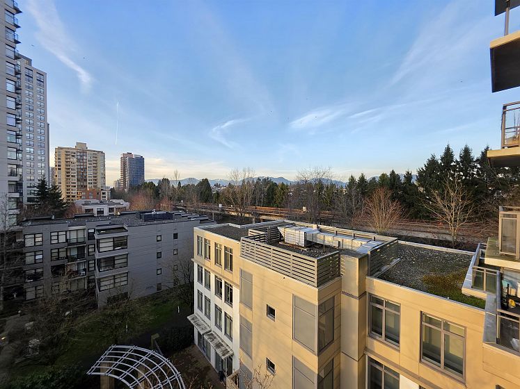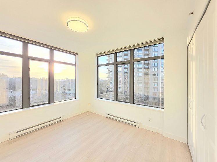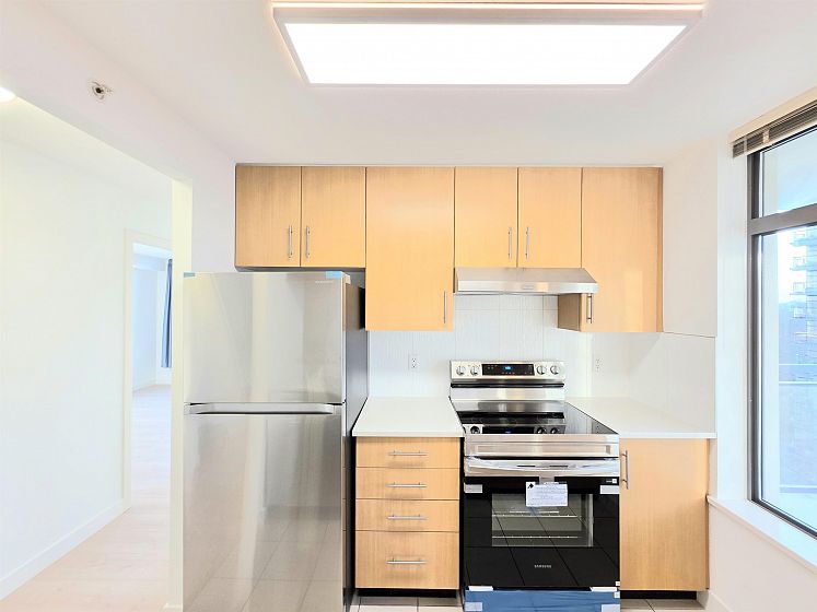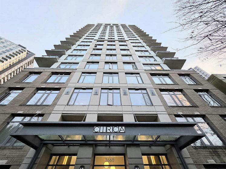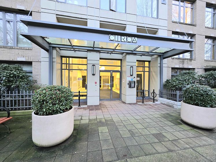 NEWLY UPDATED with fresh paint, NEW lighting, NEW laminate flooring, and NEW stainless steel kitchen appliances. Welcome to Circa by BOSA. This 2-bedroom, 2 full-bath corner residence offers stunning sunset and North Shore mountain views, overlooking a serene playground and beautifully tree-lined streets. The thoughtfully designed layout is filled with natural light and provides excellent separation between bedrooms, creating both comfort and privacy. Large windows frame the open outlook, making the home feel airy, calm, and inviting—perfect for both everyday living and entertaining. Located in a quiet yet highly connected neighborhood, just steps to Joyce–Collingwood Station and parks. 1 Parking & 1 Locker.