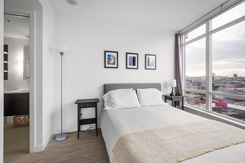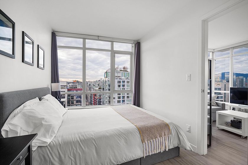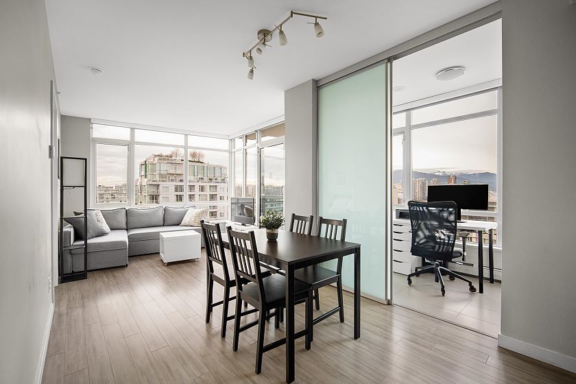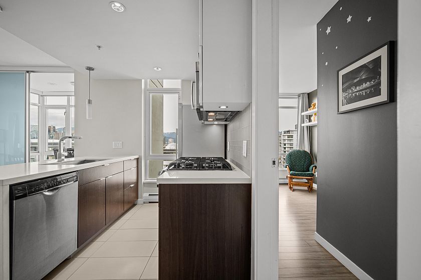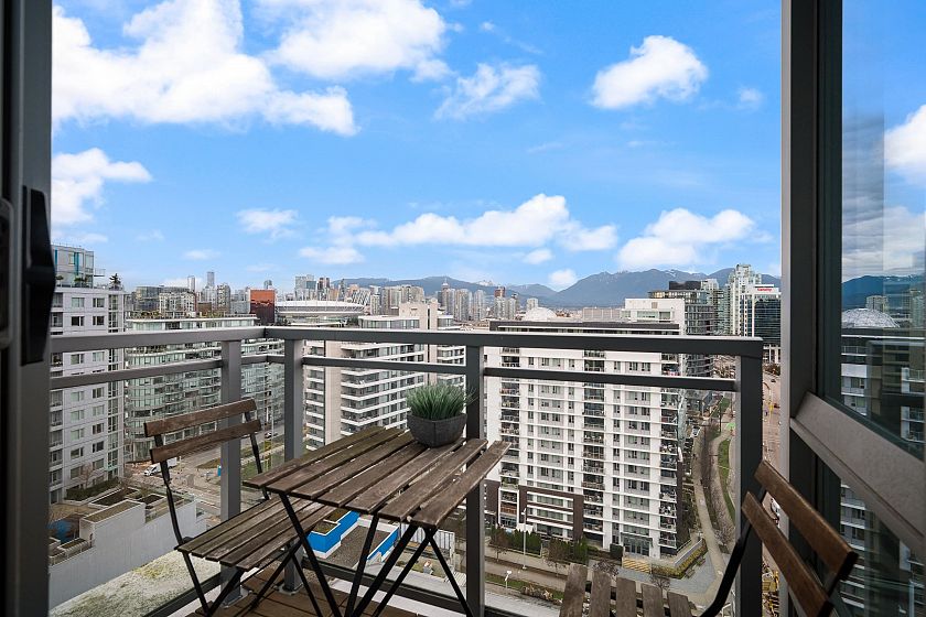 Soak in panoramic water, mountain, and city views from this bright corner home in Opsal, perfectly set in Olympic Village. Floor-to-ceiling windows capture stunning sunsets, while the ideal layout features 2 bedrooms + office/den and 2 baths, an open kitchen with a dedicated pantry, and a balcony for morning coffee. The primary bedroom includes a walk-in closet. Enjoy excellent amenities (gym, sauna, steam room, yoga space, bike storage), plus 1 parking stall and a large storage locker. Pet-friendly, steps to the Seawall, SkyTrain, parks, cafés, and the best of Vancouver Westside living.