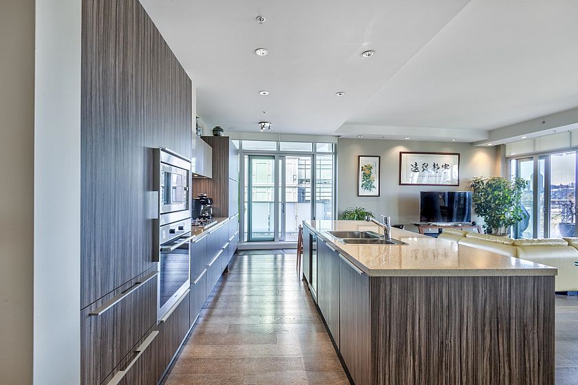 Experience refined waterfront living at the prestigious Canada House in Olympic Village. This exceptional residence showcases unobstructed views of False Creek, the city skyline, and mountains beyond. Spanning 2153 sqft, the home features over-height ceilings, hardwood floors, air conditioning, custom cabinetry, and motorized blinds. The designer kitchen is equipped with Sub-Zero refrigeration, a Miele gas range, wall oven, dishwasher, wine fridge, and a dedicated laundry room with sink provides ample storage options. Included are a private two-car garage and external storage locker. Enjoy concierge service, gym, meeting rooms, and full access to Olympic Village amenities-pool, hot tub, and fitness centre. Steps to the seawall, dining, shopping, and transit. Showings by appointment.