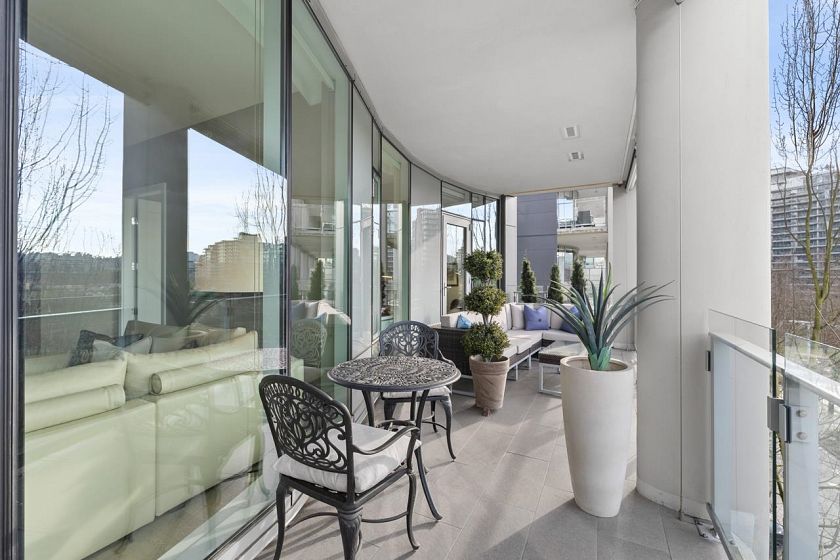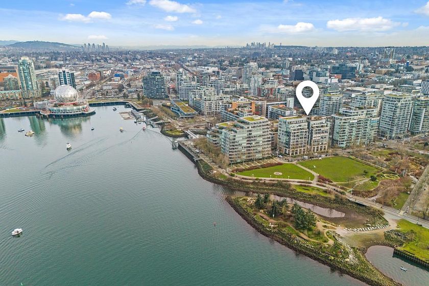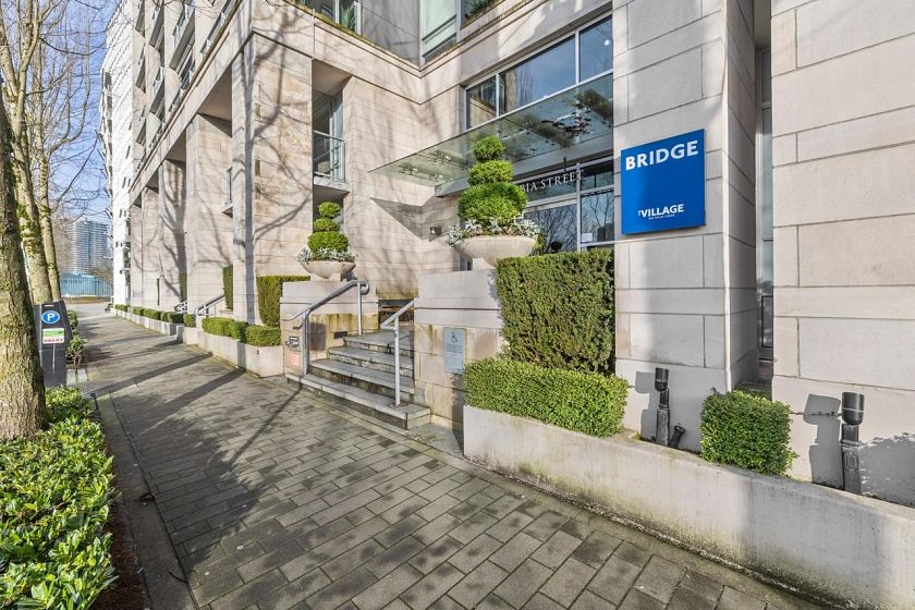Wake up to WATER VIEWS from this luxury 2 bed 2 bath residence in the BRIDGE. This stunning home ft open-concept layout w/ EXPANSIVE 235sqft COVERED PATIO overlooking PARK, FALSE CREEK & DOWNTOWN SKYLINE. Refined kitchen ft premium Eggersmann cabinetry, subzero fridge, gas cooktop & quartz counters, connecting to dining & living areas. Spacious primary ft walk-in closet & spa-inspired ensuite w/ soaker tub, walk-in shower & dual vanity. Second bedroom offers flexibility for guests or home office. This BOUTIQUE BUILDING offers RADIANT HEATING & COOLING, full-time CONCIERGE, social lounge, courtyard & first-class amenities at GOLD MEDAL CLUB ft pool, hot tub, sauna, steam room & gym. Steps to Seawall, SkyTrain, cafés & dining. Incl 2 parking & 1 locker. Open House Sun, Mar 1st 1-3PM