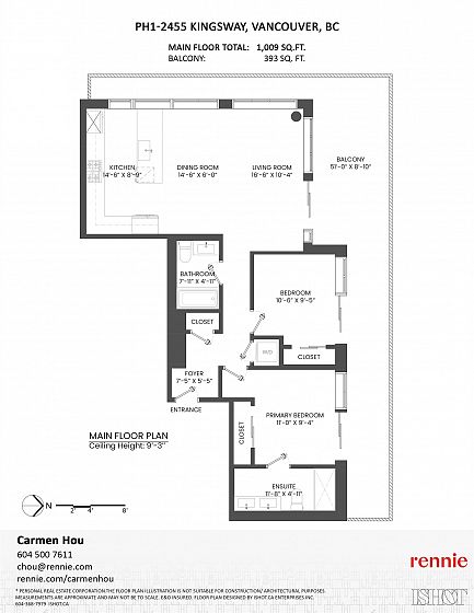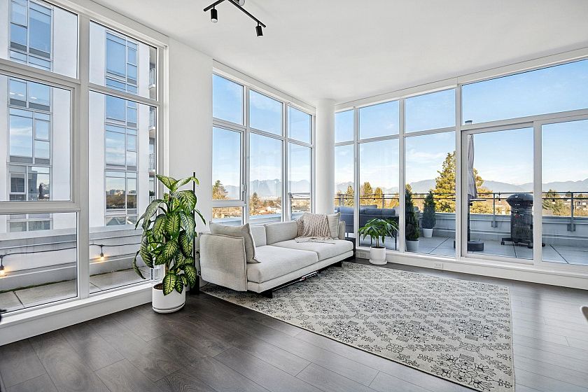 Rarely available 2BR PENTHOUSE unit at ‘The Windsor’ by Imani Development with a 393 sqft wrap-around balcony on the quiet side. A CONCRETE 6-story building with only 14 units offering exceptional privacy. Artfully crafted interiors, polished quartz counters and stainless steel Bosch appliances. Laminate floors including the bedrooms. The unit includes AIR CONDITIONING, floor-to-ceiling windows, in-suite laundry, approx. 10-foot ceilings, 2 side-by-side EV ready PARKING & 1 LOCKER. The most convenient location, close to downtown, located minutes to the Expo Line and transit, Norquay and Slocan Park, Trout Lake Community Centre and many fabulous restaurants and shops. School catchment Elementary: John Norquay, Secondary: Gladstone and Van Tech (French). Come see it before it's gone!