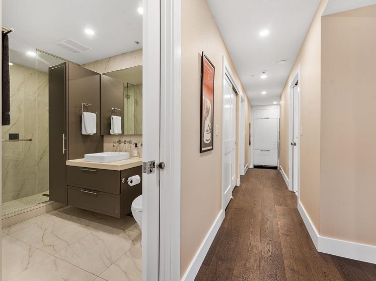 This rare ground-floor home offers a private street-level entry on a quiet, traffic-controlled bike route in the heart of Mount Pleasant West by Cambie Village. Step through the stained-glass entry into an expansive space with brushed-oak hardwood in the kitchen. The Miele gourmet kitchen features a convection/steam oven and a 36-bottle Liebherr wine fridge. Every room is finished with Hunter-Douglas shutters and custom California Closets, including a walk-in in the master suite. Enjoy year-round climate control with fully integrated Air Conditioning and radiant in-floor heating. The home is engineered with concrete topping between floors for superior soundproofing and includes a large enclosed patio with a natural gas BBQ hook-up. 98/100 Walk Score, you are steps from everything.