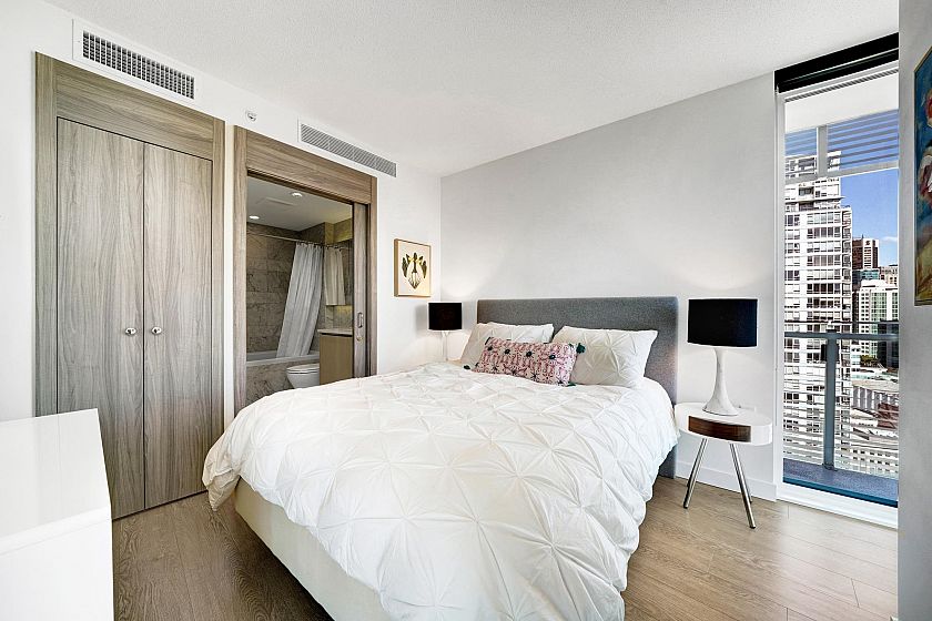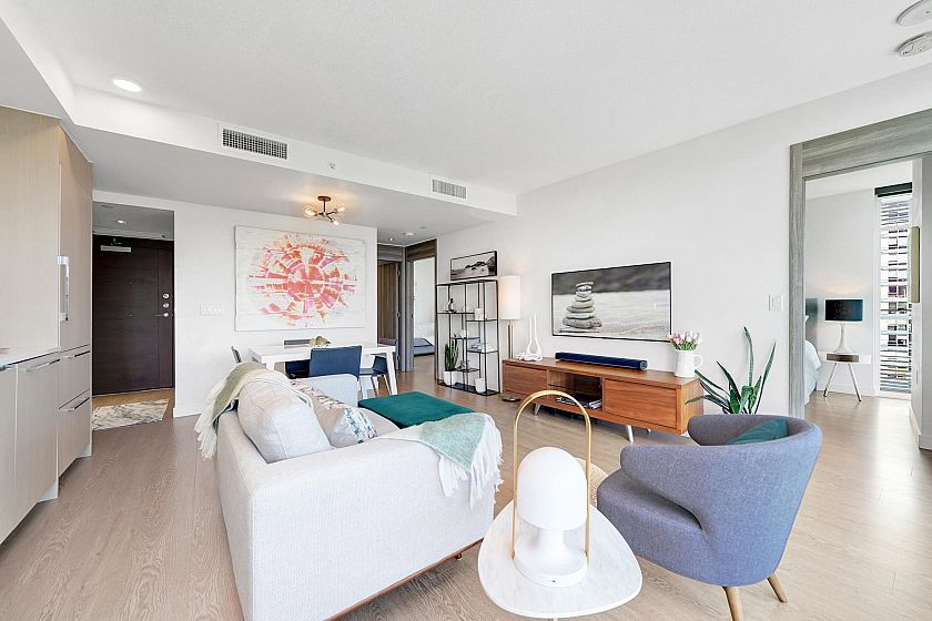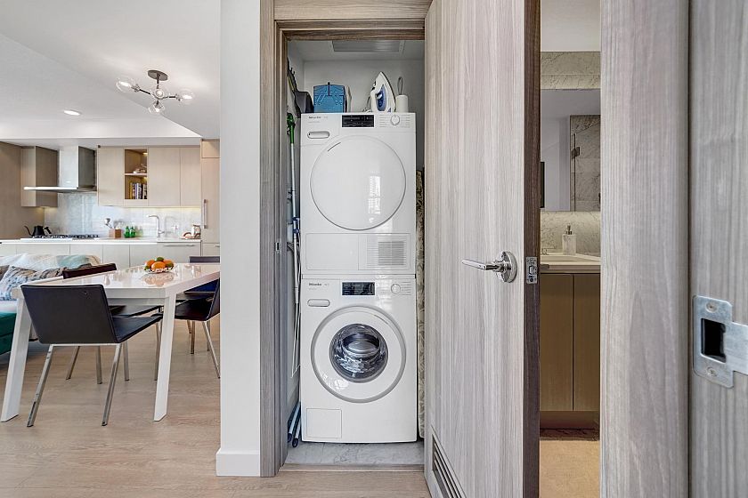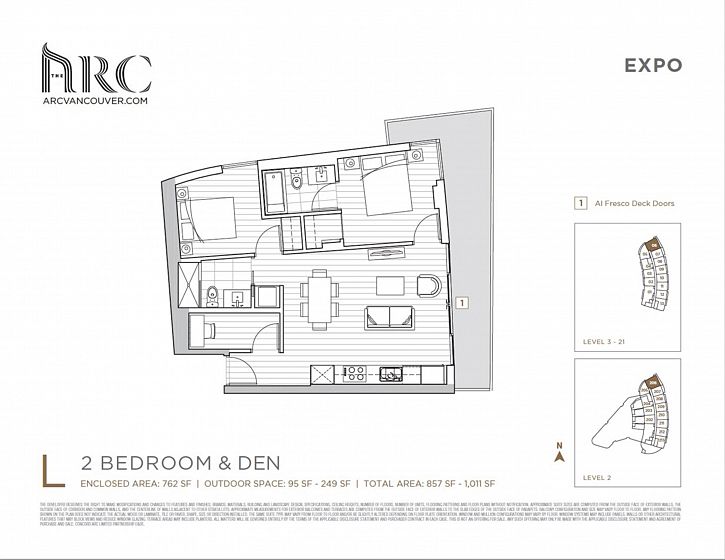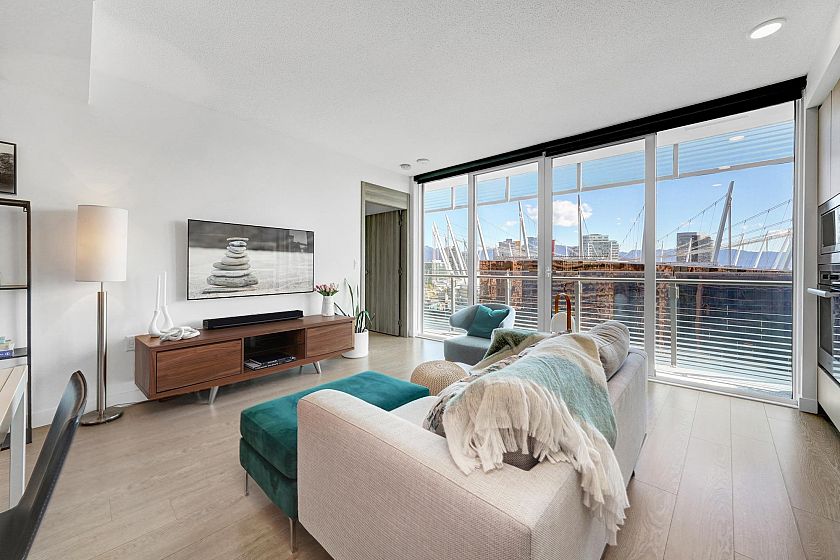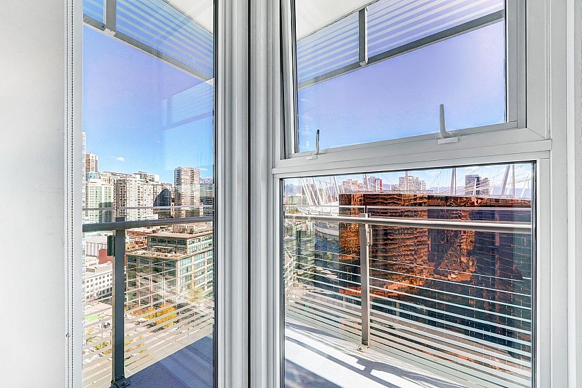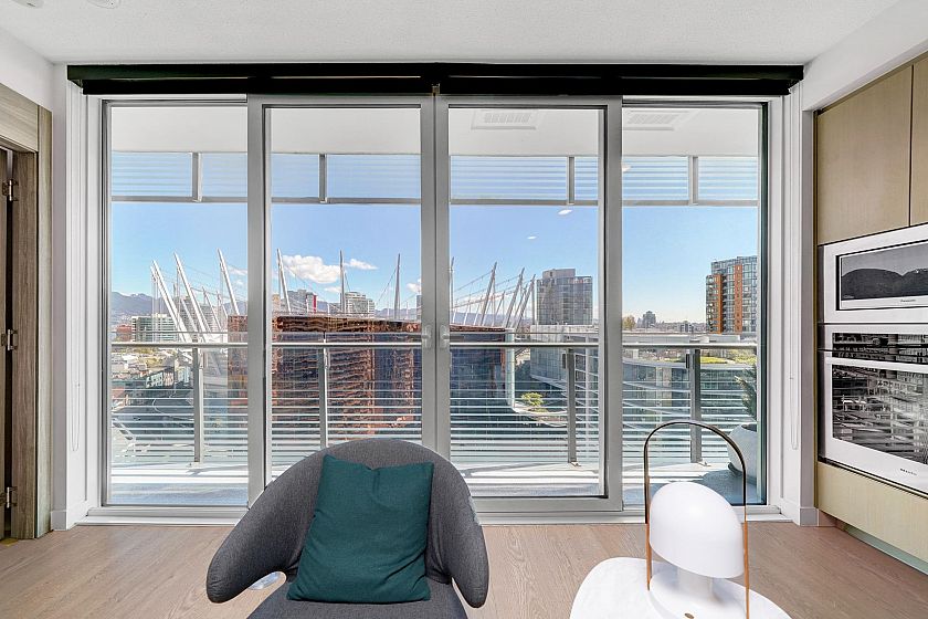 WOW! AT THE ARC, your own PARKING WITH LEVEL 2 CHARGER\ 4 LARGE LOCKERS. 24/7 concierge, co-working space, outdoor fire pit, BBQ, lounge, air conditioning & kids'area. Steps to Yaletown, Seawall & vibrant sports & entertainment district! Step out of the 20th-floor elevator to the luminous amenities of The Arc with glass-bottom pool, sauna, steam, hot tub, gym, heated lounge chairs, and sky lounge.The privacy of curved corridor leads to this luxury 2-bed+ flex, 2-bath corner home where you will enjoy full-size Miele appliances, spa-inspired baths, wrap-around balcony, and stunning city, mountain & water views through triple-glazed floor-to-ceiling windows, double slider type patio doors. Best flowing plan with no lost corridor space, on the PREFERRED QUIET SIDE AWAY FROM CONSTRUCTION NOISE.