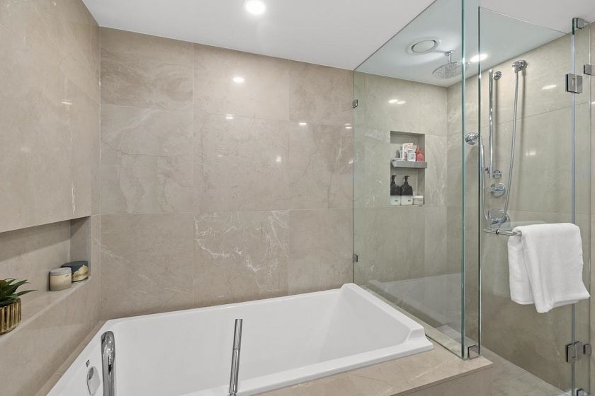 Welcome to The Charleson-Yaletown's crown jewel of modern luxury. This south-facing 2 bed, 2 bath corner home offers nearly 420 sq. ft. of covered outdoor living w/ gas hookup. Inside boasts wide-plank oak hardwood, A/C, motorized blinds, built-in speakers, custom millwork, & large walk-in closets. Spa-inspired baths feature radiant heated floors, Kohler rain shower, deep soaker tub & backlit mirrors. The gourmet kitchen boasts Wolf appliances, Sub-Zero fridge, & wine fridge. Residents enjoy 11,500+ sqft of premium amenities including a gym, yoga studio, pool w/ cabanas, hot tub, sauna, steam room, wine room, lounges, and guest suite across the hall. Includes private 2-car garage, large storage, and bike locker. This is luxury living at its finest.
