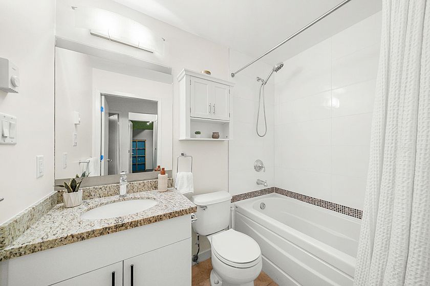 Discover this quiet & sun-filled 2nd-floor southeast corner unit in a well maintained 4-storey boutique building. Featuring 2 bdrms plus flex room, this home offers a thoughtfully designed open-concept layout that maximizes natural light & livable space. The kitchen is equipped w/ stone countertops, stainless steel appliances, and ample storage. The living area that opens onto a spacious wrap-around patio—perfect for morning coffee & relaxing evenings. Additional highlights: secure parking & pets & rentals welcome, an ideal choice for homeowners or investors. Ideally situated close to the Canada Line, bus routes to UBC, VGH, and the Broadway Corridor, as well as shops, cafes, and restaurants, this exceptional home combines comfort, style, & convenience in one highly sought-after location.