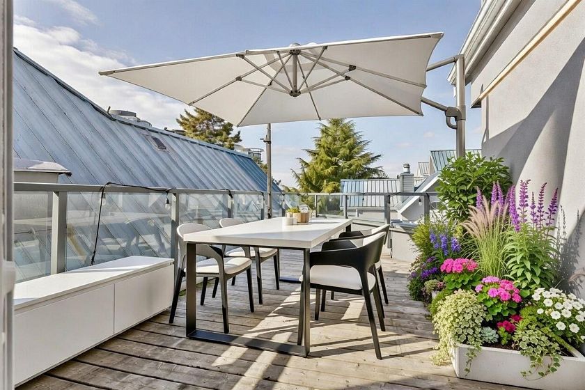 Own above the city. This rare False Creek penthouse delivers panoramic views of downtown Vancouver, the water, and the North Shore mountains, all from your private rooftop terrace. Host sunset dinners under the stars, unwind with skyline views, or start your morning with coffee on your second patio. Inside, two true bedrooms offer the flexibility today’s lifestyle demands. Home office, guest space, creative studio, without sacrificing flow or design. Thoughtfully updated and filled with natural light, this home blends elevation with everyday livability. Steps to Granville Island, the seawall, cafés, and marinas. Pets allowed, parking and storage included. If you’ve been waiting for something that feels different, this is it!