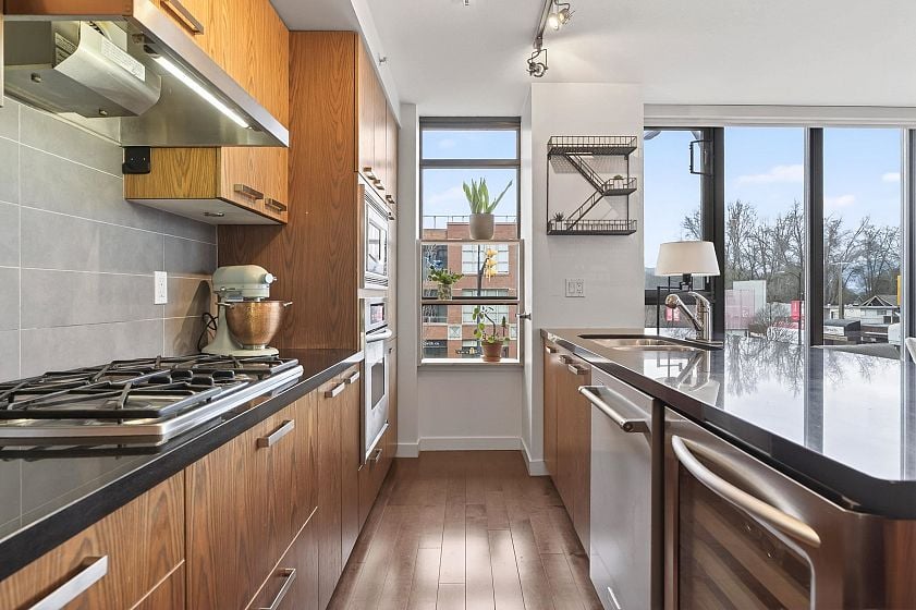 Welcome to Olive–this bright & lovingly cared for corner 2-bedroom+office+flex home in the heart of Vancouver’s coveted Cambie Corridor, voted to be one of "the coolest streets in the world" in 2025. With over 1,000 sq.ft. of well-planned living space, enjoy wrap-around windows showcasing open city views toward downtown and the North Shore mountains. The open layout connects living and dining seamlessly, perfect for daily living and entertaining. The kitchen features rich wood cabinetry, stone counters, newer stainless steel appliances, gas cooktop, and ample storage. A dedicated office and insuite flex/storage room add rare versatility. Two well-separated bedrooms and two full baths offer privacy. Includes secure parking, an extra-large locker, and a well-managed building.