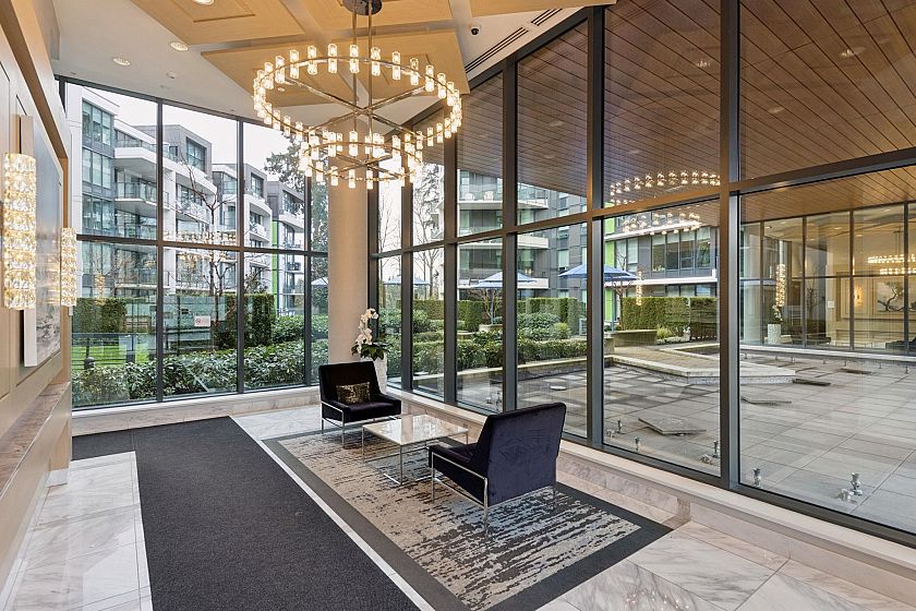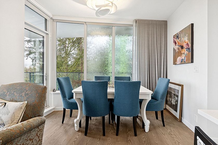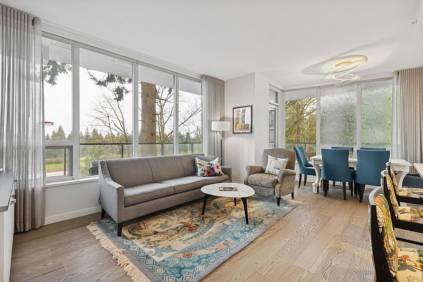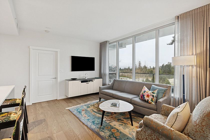 The Residences at Nobel Park by Polygon offer refined everyday living in the heart of UBC, surrounded by academic excellence & vibrant community amenities. Steps from Wesbrook Village, this picturesque, walkable neighborhood features tree-lined streets, shops, cafés & essential services. Excellent elementary & secondary schools are nearby making it ideal for families. Bright 2-bed, 2-bath SOUTH corner home showcases a spacious open-concept layout with 9-ft ceilings, floor-to-ceiling windows, AC & premium stainless-steel appliances in a designer kitchen. Enjoy sweeping 180-degree panoramic views of the tree line, UBC farm field & forest from every room, or relax with a book on the generous covered deck. Residents benefit from an in-building fitness studio, lounge, parks, restaurants, etc