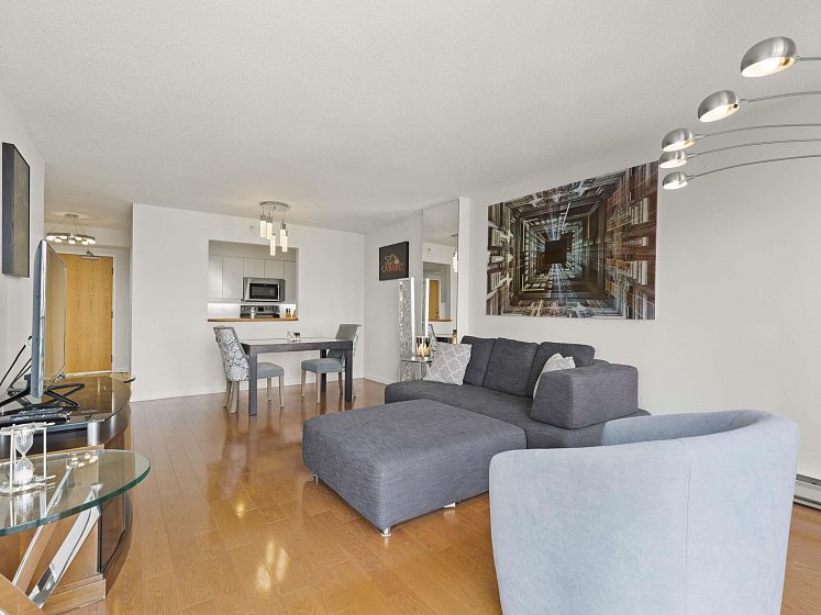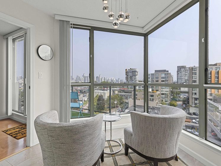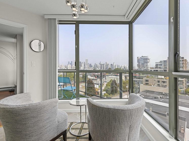 This spacious 2 bed 2 bath condo offers 1,133 sqft of comfortable living space in the vibrant Kitsilano/Fairview neighborhood. Features include gleaming hardwood floors throughout and a bright sunroom den that fills the home w/ natural light and great city/mountain views. The kitchen boasts SS appliances, while the large primary bedroom includes a renovated bathroom w/large walk in shower and WIC. The second bath has also been renovated and is directly across the second bedroom. Building amenities incl. indoor pool, gym, and live-in caretaker. 1 parking, storage locker, and EV charging stations. The prime location puts you within a couple of blocks of trendy cafes, shops, West 4th, Granville island, South Granville district and Kits beach.