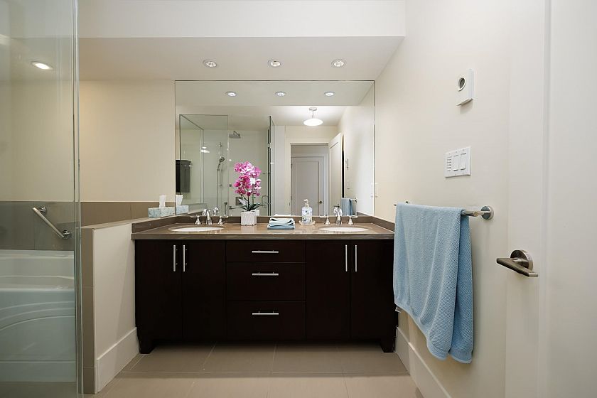 Rare 1791 sq ft 2 bedroom and den, family room, 2.5 bathroom, 2-level home in one of Arbutus Village's most sought-after concrete buildings. Completely renovated in 2010, this gem offers large principle rooms to easily accommodate house-sized furniture, hardwood floors, granite counters, insuite laundry and other first-class finishings. Enjoy huge foyer, ensuite bathrooms in each bedroom, generous den that could easily be 3rd bedroom and convenient 2nd entrance on upper floor. Meticulously kept building with pro-active council and much-appreciated outdoor pool. 2 side-by-side parking stalls, 1 storage locker. Pets welcome. Measurements approximate. OPEN HOUSE SUNDAY MARCH 1st 2-4 PM.