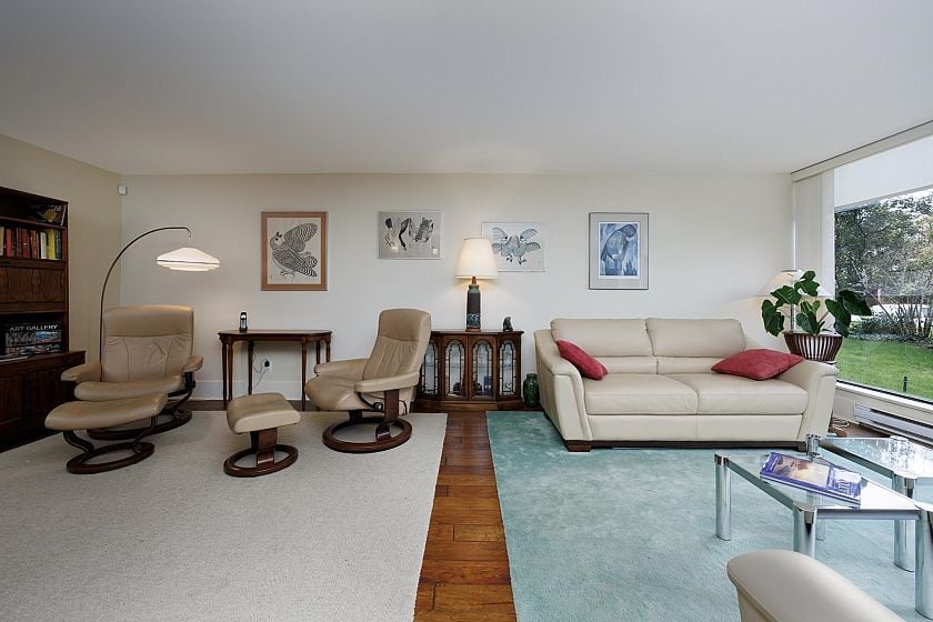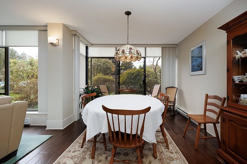 Rare 1791 sq ft 2 bedroom and den, family room, 2.5 bathroom, 2-level home in one of Arbutus Village's most sought-after concrete buildings. Completely renovated in 2010, this gem offers large principle rooms to easily accommodate house-sized furniture, hardwood floors, granite counters, insuite laundry and other first-class finishings. Enjoy huge foyer, ensuite bathrooms in each bedroom, generous den that could easily be 3rd bedroom and convenient 2nd entrance on upper floor. Meticulously kept building with pro-active council and much-appreciated salt-water outdoor pool. 2 side-by-side parking stalls, 1 storage locker. Pets welcome. Measurements approximate.