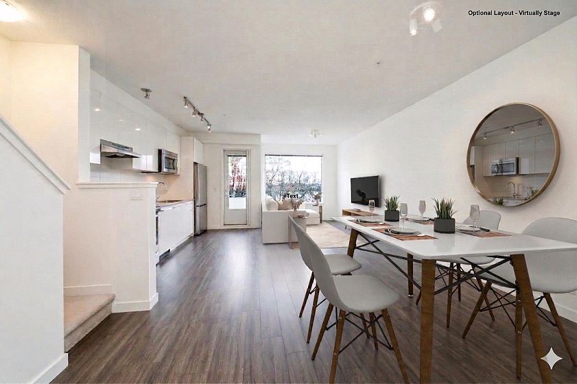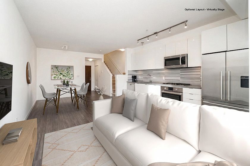 This unique two-level home blends thoughtful design, natural beauty, & urban energy—perfectly suited for those seeking both balance & inspiration. The main level, has the open-concept living, dining, and kitchen areas that flow seamlessly together with high ceilings, with a view of the river. The upper floor provides great separation between the living space and bedrooms. Situated in a vibrant new community, this home offers a modern lifestyle defined by light, openness, and connection. Enjoy quiet walks on the river path, or a short walk to the shopping hub and restaurants of River District, or a work out in the gym. it is pet friendly and this East Vancouver location provides easy access to Burnaby and Richmond. Open House Sun April 26, 3-4:30