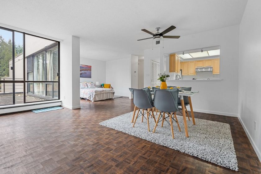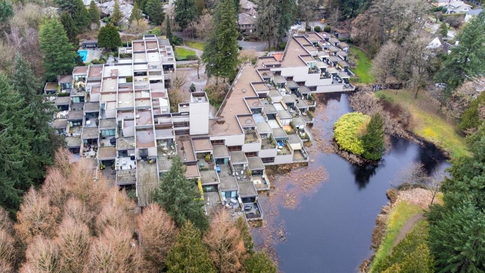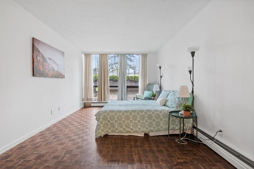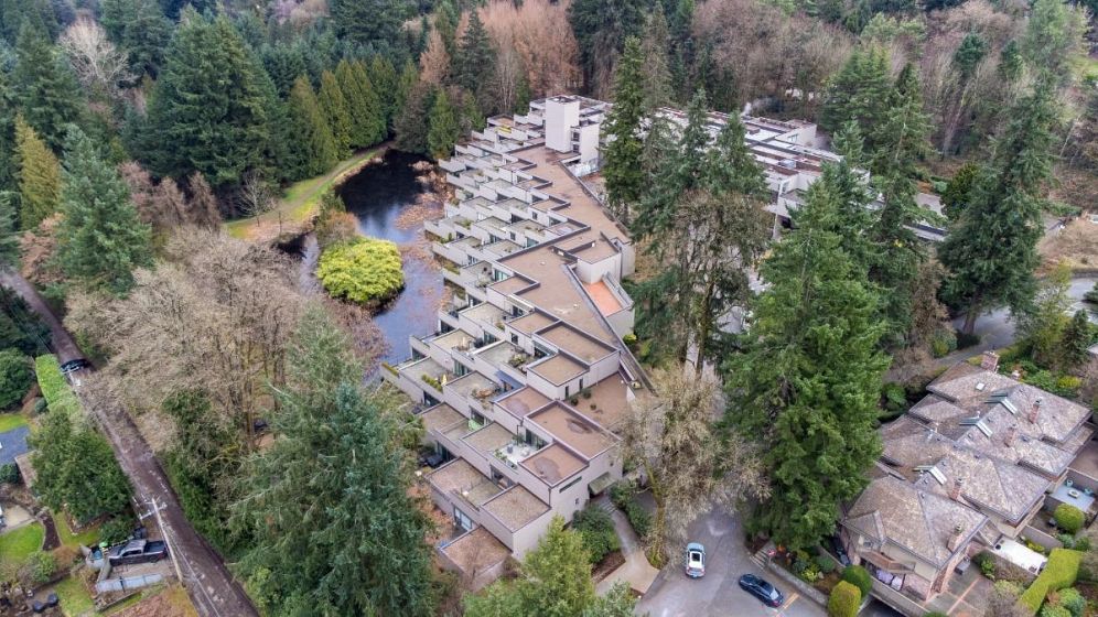 Ground-level 2-bed/2-bath, home with serene water & Duck Island views, oversized private patio, & incredible renovation potential. Ready for your design ideas. Spacious primary bedroom with large walk-in closet. TWO secured parking stalls (#115/#116) + oversized storage locker(#62). Secure gatehouse entry, outdoor pool & summer social area for residents. Nestled beside VanDusen Gardens with mature trees, fresh air, & peaceful surroundings-truly feels like living in a park. Ideal for end-users or investors seeking a quiet, nature-filled setting close to amenities. Note: 2nd-bed requires framed door. Offers presented as received.