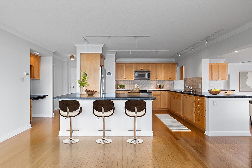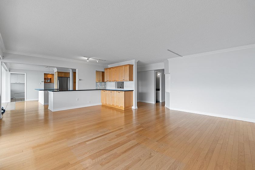 Incredibly rare opportunity to own a south and north facing double unit at the Seastrand on the West Vancouver Seawall. A bachelor suite and 2-bedroom suite were joined to create this incredible 2 bedroom, 2.5-bathroom, 1,448 sq. ft. apartment. This second-floor unit overlooks the sundrenched (soon to be resurfaced) swimming pool and has spectacular 180 degree south facing views from all the main room and picturesque mountain views from the 2 bedrooms. One of only 2 buildings in West Vancouver on the waterfront side of the train tracks. Beautifully renovated with permits in 2006. Bonus of 2 parking spaces and 2 storage lockers.