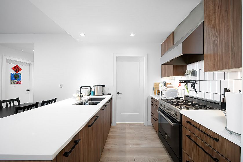 Set within the tranquil courtyard of Cambria Park by Mosaic Homes, this LEED Gold–certified 2 Bed + 2 Bath + Flex + Den/Pantry home offers a rare blend of peaceful living and urban convenience, just steps from the green open spaces of Cambie Park and overlooking the scenic Langara Golf Course, while being moments to Langara College, the Canada Line and everyday shopping at Oakridge Centre and Marine Gateway, featuring a bright and efficient layout with no wasted space, private patio on the quiet side of the building, 9-foot ceilings, radiant in-floor heating, HRV system and laminate wood flooring, a spacious primary bedroom with walk-in closet and ensuite, plus a modern kitchen with quartz countertops and premium appliances including a Bertazzoni gas range, Blomberg fridge and dishwasher,