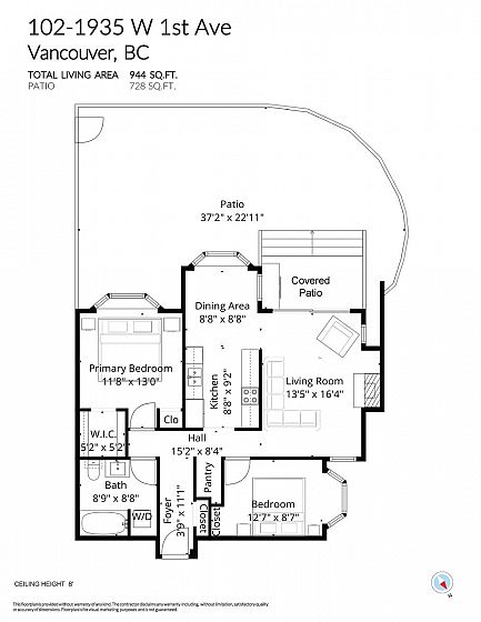 Welcome to Kitsilano! Located in the coveted North of 4th location, this spacious, ground-floor 2 Bed + 1 Bath home is a must-see! Enjoy the functional and well thought out layout, with bedrooms on opposite sides - ideal for working from home, sharing the space, or hosting guests! The generous main living area features a cozy gas fireplace and seamless access to an additional 728 sq. ft. of private outdoor living space. Recent upgrades include new flooring throughout (2025), new washer/dryer (2024) & bathroom renovation (2021), Includes in-suite laundry, parking & oversized storage locker. Centrally located steps to shops on Cypress & 1st and just a short walk to Kits Beach, Granville Island, shopping, restaurants & all other local conveniences! Open House Sat/Sun 2-4pm.