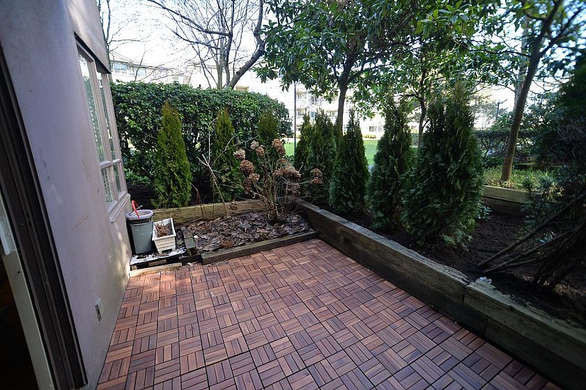 Location, Location! Ground floor corner unit with good sized 2 bedrooms, 1 bath, and a ground patio. Just steps away from Joyce-Collingwood station and shopping. The unit was newly renovated in February 2026 after the tenant moved out. New Laminate Flooring, New Painting, New Closet Door Sliding Rails, New Door Lock, New Patio Flooring and New Window Sills and Caulking for both 2 Bedroom Windows. Only 2 Years Old Stove, 3 Years Old Fridge. The dishwasher is not working and the owner will replace it with a brand new one by the Completion Date. Quiet Shared Courtyard for kids and for walking. Well-managed strata with updated industrial-grade shared laundry machines. Includes 1 parking space and 1 locker. First Showing is during Open House on Feb 28 (Sat) & March 1 (Sun) btw 2-4 Pm.