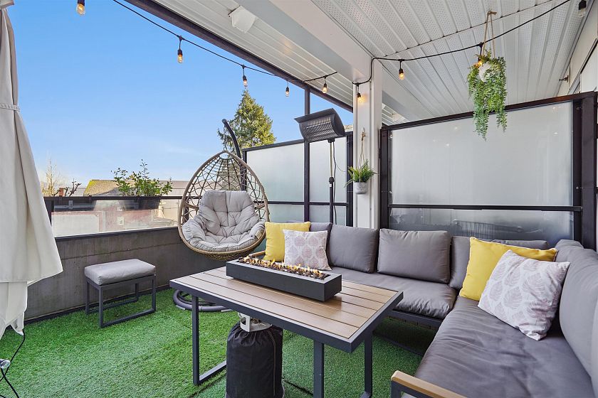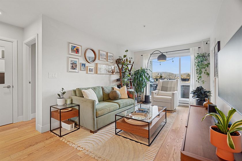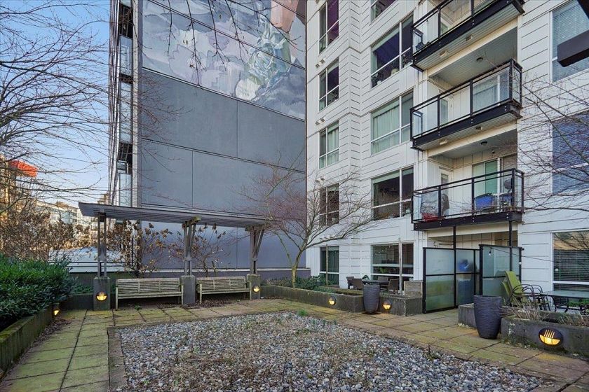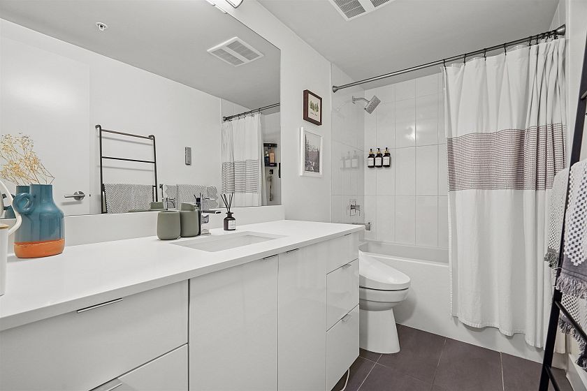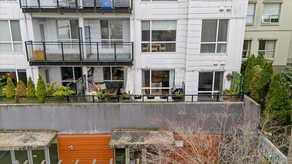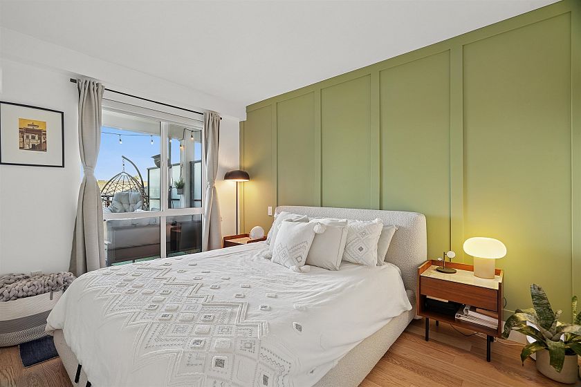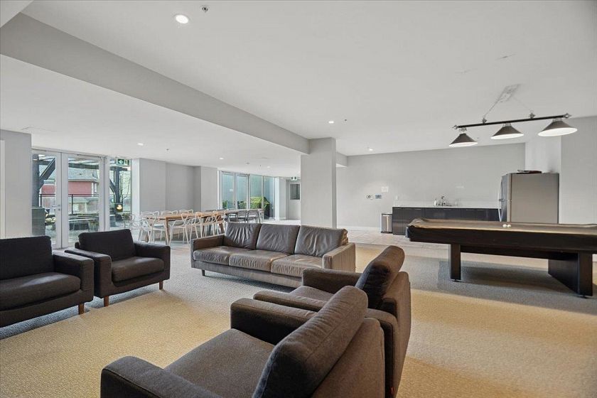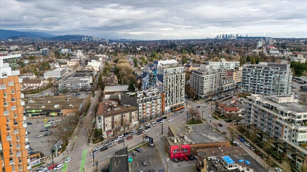 Welcome to Vya by PortLiving in vibrant Mt Pleasant! This 955 SF, 2 bed, 2 bath home (built 2017) is on the quiet side & offers a smart layout w/1 den + office + insuite storage/pantry. Gourmet kitchen w/ quartz counters, glass tile backsplash, ample storage & full-size Fisher & Paykel + KitchenAid S/S appliances. Primary bdrm feat. walk-thru closet w/custom built-ins & spa-inspired ensuite. Hardwood floors + smart lighting, thermostats & blinds. 222 SF elevated patio fits lounge, BBQ & dining set w/ North Shore mtn views. Very well-maintained, pet-friendly building w/ 2 landscaped terraces, fire pit & BBQ. Steps to shops, cafes & future Main–Broadway Station. School catchment: F.Nightingale Elem, C.Tupper Sec., French Immersion Van.Tech.Sec. 1parking+2lockers. OH: Sunday, March 8, 2-4 PM.
