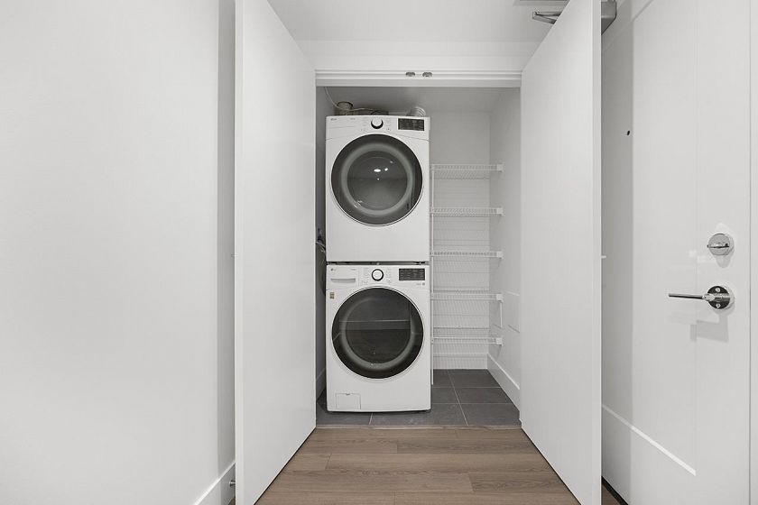 A wonderful offering! Introducing Parkside at Lynn, a newly constructed concrete building by Mosaic.This 2 bedroom 1 bath garden level home centres around it's chef inspired kitchen fully equipped with high end European appliances and modern cabinetry with plenty of pantry space. Spacious with an open concept layout, overheight windows, heating and cooling for year round comfort, and a large private patio perfect for dinner a la fresca and entertaining guests. Enjoy access to the Lynn Club, complete with a movement studio, fitness centre, indoor pool, great room, rooftop patio with fire pit and outdoor barbecue area. Surrounded by greenbelt and close to shopping, schools, parks, Mount Seymour trails along with easy access to highways and many more! Open house Sunday Mar 1, 2-4pm.