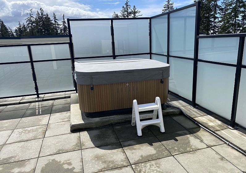 Virtuoso by ADERA! This Penthouse offers 2 beds 2 baths including a perfect and spacious roof top deck. Open floor and huge ceiling windows, gourmet Kitchenaid Appliances, dining room living room, Air conditioning. Large storage locker included. Upper level den/nook and a 600+ sq. ft ROOF TOP DECK featuring big sky and forest views and private hot tub. Entertain your friends or enjoy some peace and quiet to yourself. Just steps to nature trails & beaches, yet convenient shopping and all the University has to offer. Close to Norma Rose Point and University Hill schools.