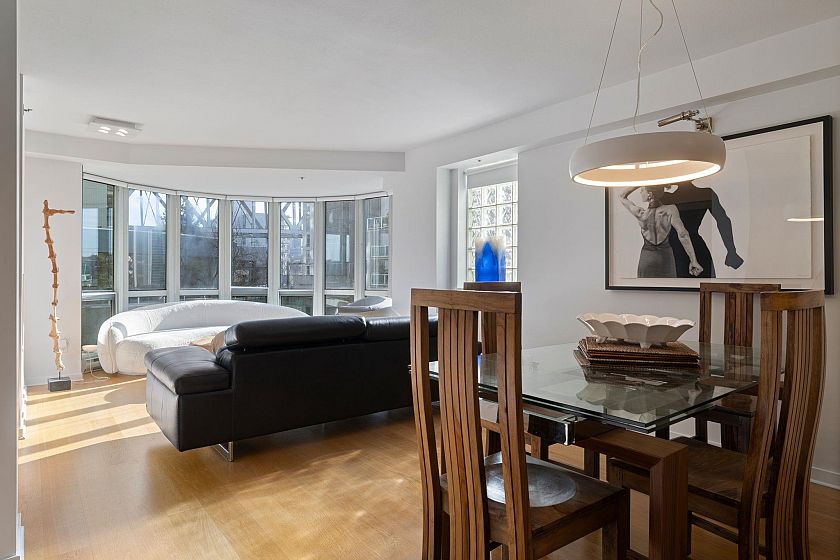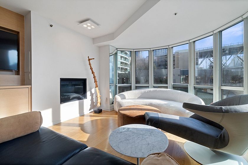 STUNNING, FULLY RENOVATED WATERFRONT HOME, OVERLOOKING THE SEAWALL! THE SUITE - beautifully bright & spacious corner home with fun architectural touches, like feature curved window walls, clever use of glass block, and cute porthole window in 2nd bedroom. Custom renovations include spectacular house size kitchen & reconfigured primary suite with endless closets + decadent ensuite bathroom. Cute home office. Engineered floors + custom built ins throughout. Unobstructed water views across False Creek towards Granville Island. TWO PARKING STALLS. THE COMPLEX - 888 BEACH - meticulously maintained, with indoor pool, fitness centre, steam/sauna + concierge. Extraordinarily peaceful yet central location. Steps to great local shops, bike to Stanley Park in 5 mins, or walk to YHD for dinner in 10!