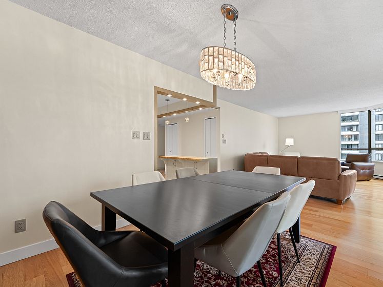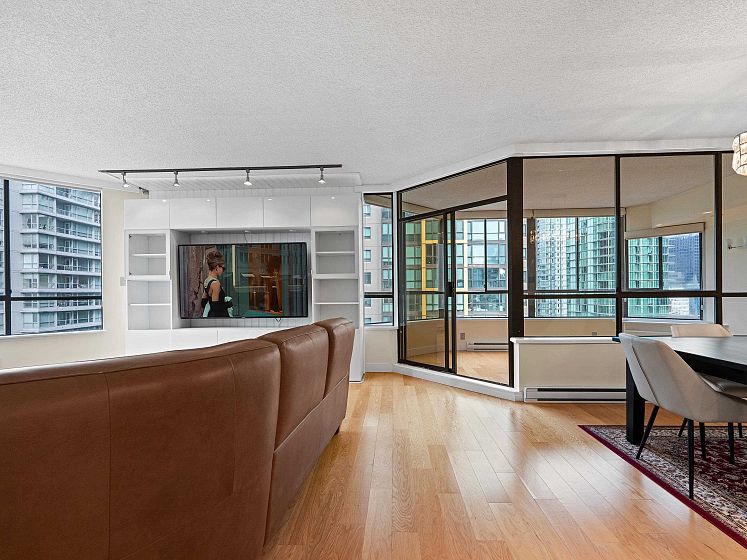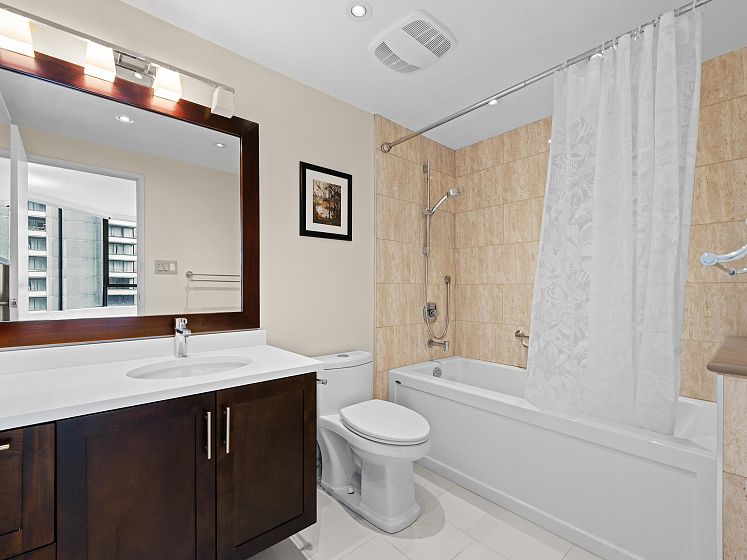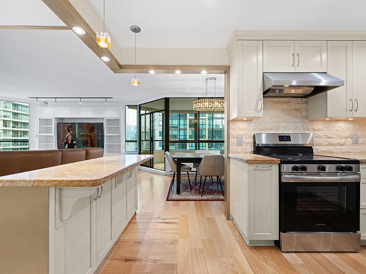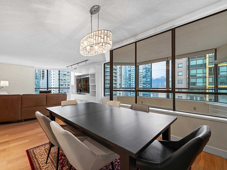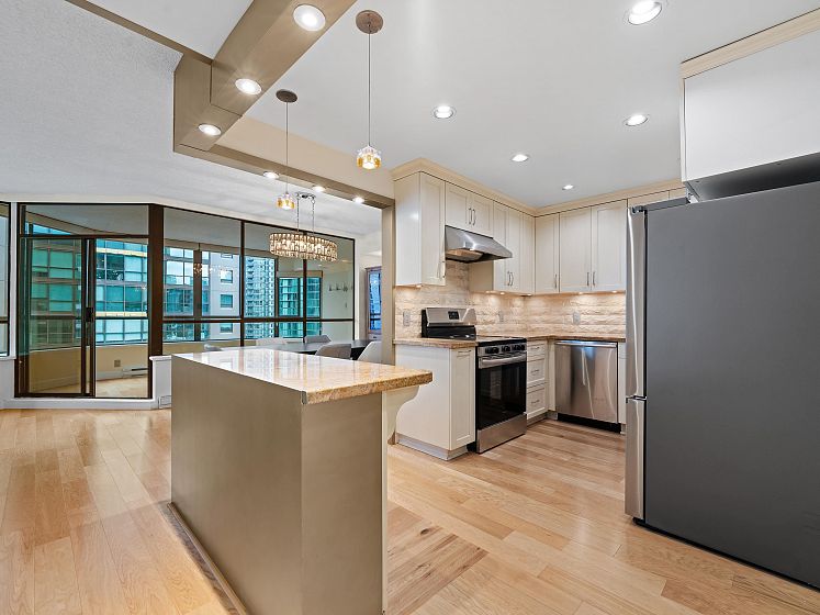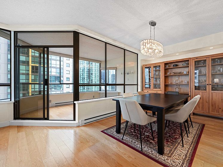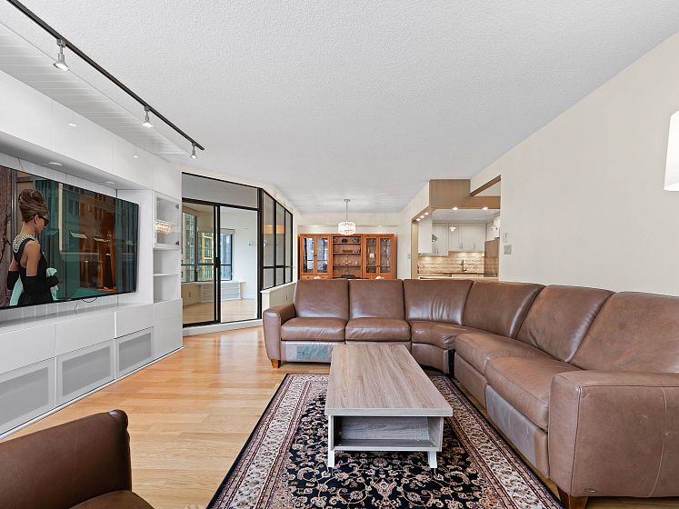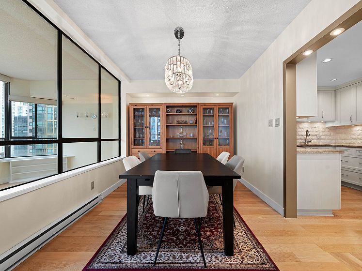 Discover Alberni Place - just steps from the Coal Harbour waterfront, Robson Street, and some of the city’s finest dining and shopping. Expansive 2 Bedroom + Den residence has been thoughtfully renovated in 2016 & 2025 in an elegant transitional style. The stunning kitchen showcases Jerusalem stone, granite countertops, stainless steel appliances, and a seldom-seen butler’s pantry/laundry room — a unique feature in the condo market. Both bathrooms beautifully updated with quality finishes. Perfect for downsizers, the spacious primary bedroom easily accommodates a king-sized bed. Caribbean rosewood flooring and plush Shetland wool carpeting reflect the exceptional care and pride of ownership throughout. Enjoy partial water and mountain views in a location that truly is a walker’s paradise.