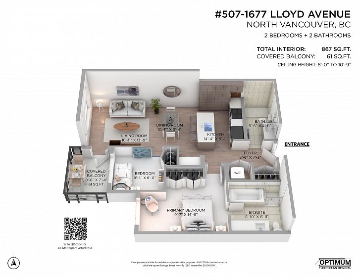 Elevate your lifestyle in this exquisite top-floor residence at District Crossing—a West Coast masterpiece by Qualex-Landmark and Marcon. This rare offering is defined by soaring 11' vaulted ceilings and an open plan that flows to a covered balcony, perfect for golden sunsets and city lights. The grand primary bedroom is a sanctuary with a spa-inspired ensuite, featuring a separate soaker tub & shower. The gourmet kitchen features a pantry wall & a central island. A dedicated flex space with built-in cabinetry offers a sophisticated home office. Enjoy a pet/rental-friendly building with a gym, lounge, parking & storage. Steps from the Spirit Trail & Heywood Park, with "hop-on" access to the Lions Gate Bridge for a 10-minute commute to Downtown. High-end living meets ultimate convenience.