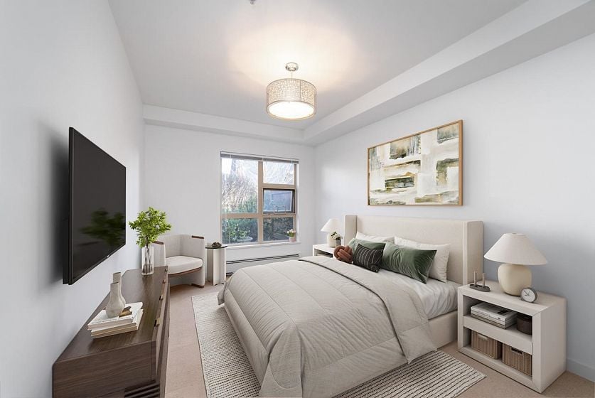 Welcome to this beautiful 2 bedroom condo in the heart of Central Lonsdale! Enjoy unbeatable convenience just steps from shops, popular restaurants, parks, and transit. This home features a fantastic floor plan with an open kitchen, no wasted space, and generously sized bedrooms that offer comfort and flexibility. The bright and spacious living area flows onto a large covered patio, perfect for relaxing or entertaining . Located in a quiet, well maintained building, this condo brings together city convenience and relaxed, comfortable living. A great opportunity in one of North Vancouver’s most desirable locations! Pictures are digitally staged.