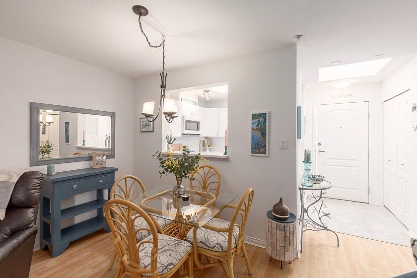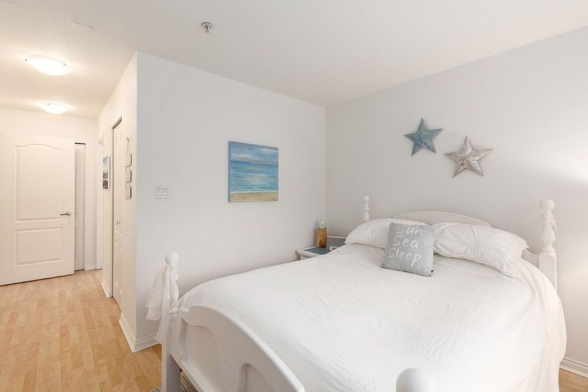 RARELY available - fully updated & elegantly appointed PENTHOUSE suite with vaulted ceilings on the highly desired quiet side of RIDGE PARK GARDENS. Spacious 985 Sq. Ft. floor plan with 2 bedrooms, 2 full bathrooms, gas fireplace, in-suite laundry, radiant in-floor heating and serene outlook to the North Shore mountains. 1 Parking stall, an extra large storage room and ample underground visitor parking. Exceptionally well-maintained 55+ strata that welcomes pets and is just steps to Wagg Park. Fabulous amenities including a guest suite, residents’ lounge with fireplace, kitchen, pool table, TV room, inner courtyard garden and workshop. Walking distance to all that you need in Central Lonsdale. It simply does not get any better than this!
