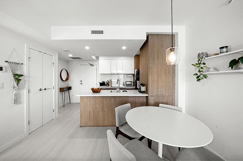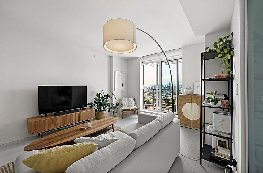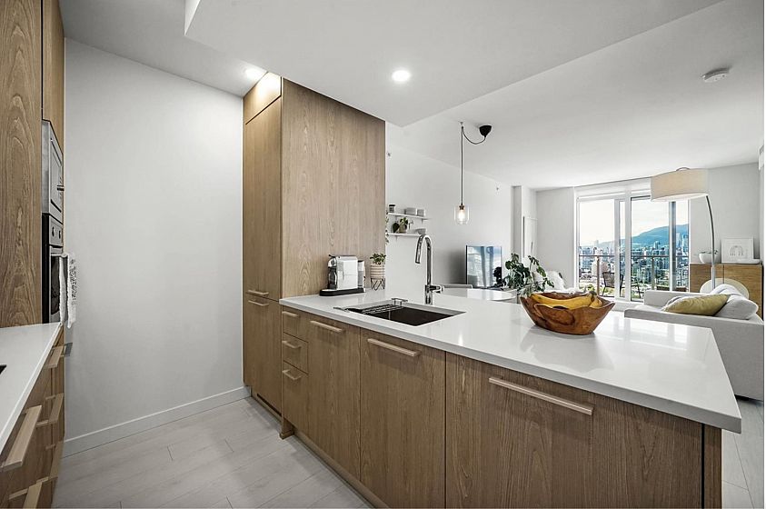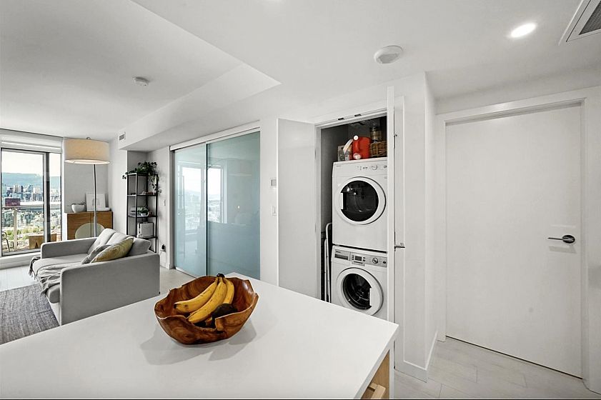 The VIEWS will blow you away. Stunning, UNOBSTRUCTED & PANORAMIC water, mountain and city views from your contemporary 2 bed in the heart of Mount Pleasant. This air conditioned home boasts a modern kitchen w/ integrated appliances/Porter + Charles Induction cook top, & quartz countertops. Interior finishes include in-floor bath heating, custom millwork wardrobes & laminate floors. Stroll along trendy Main St then sip wine on your large patio and enjoy spectacular sunsets over English Bay. Fantastic amenities include gym, rec room, guest suite, BBQ area, dog wash station & more. Includes 1 EV parking spot and HUGE storage locker. Pet and Rental friendly with a walk score of 96. Steps from transit, with Nesters & Starbucks downstairs. Call for your private showing of this incredible home!