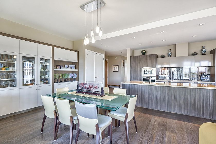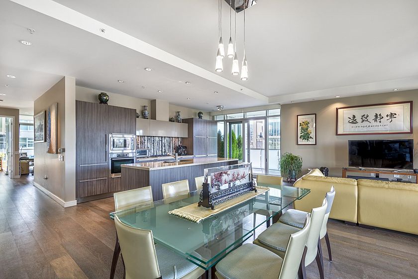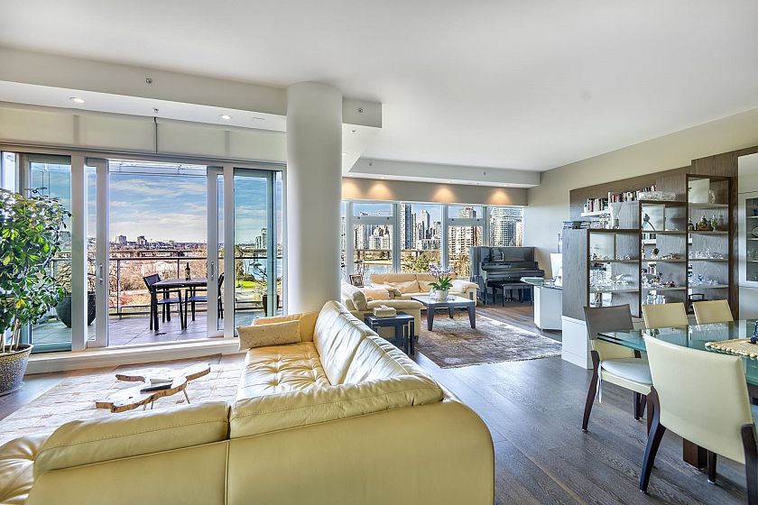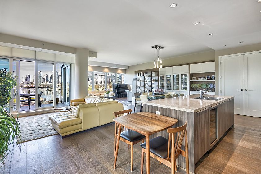 Experience refined waterfront living at the prestigious Canada House in Olympic Village. This exceptional residence showcases unobstructed views of False Creek, the city skyline, and mountains beyond. Spanning 2153 sqft, the home features over-height ceilings, hardwood floors, air conditioning, custom cabinetry, and motorized blinds. The designer kitchen is equipped with Sub-Zero refrigeration, a Miele gas range, wall oven, dishwasher, wine fridge, and a dedicated laundry room with sink provides ample storage options. Included are a private two-car garage and external storage locker. Enjoy concierge service, gym, meeting rooms, and full access to Olympic Village amenities-pool, hot tub, and fitness centre. Steps to the seawall, dining, shopping, and transit. Showings by appointment.