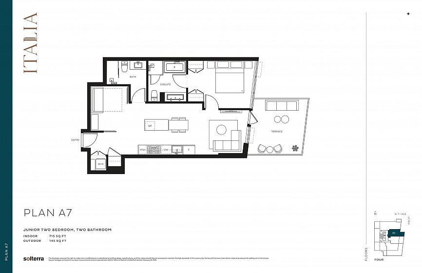 This luxurious and customizable Junior 2 bed, 2 bath pre-sale home with city skyline views, has it all. Italian imported and motorized kitchen cabinetry, full size Gaggenau appliances, tip-open wine fridge, and two spa inspired bathrooms featuring a rain shower, hand wand, and body jets. An EV-ready parking stall and a storage locker complete this unbeatable offering. Steps from the Arbutus Greenway and future Burrard Slopes Park, a 4 minute walk to the new Broadway Subway and a 7 minute stroll to Granville Island. South Granville is the perfect neighborhood to put down roots. Built by award-winning Solterra, Italia blends modern high-rise amenities with boutique living. Visit the Italia Presentation Centre at 880 Seymour St, open 12-5 Sat-Wed. For a limited time, enjoy the excitement of