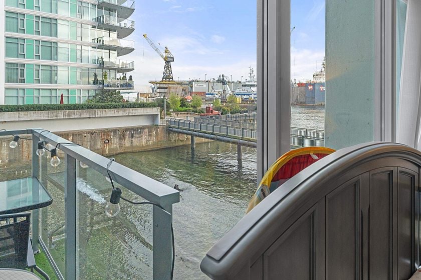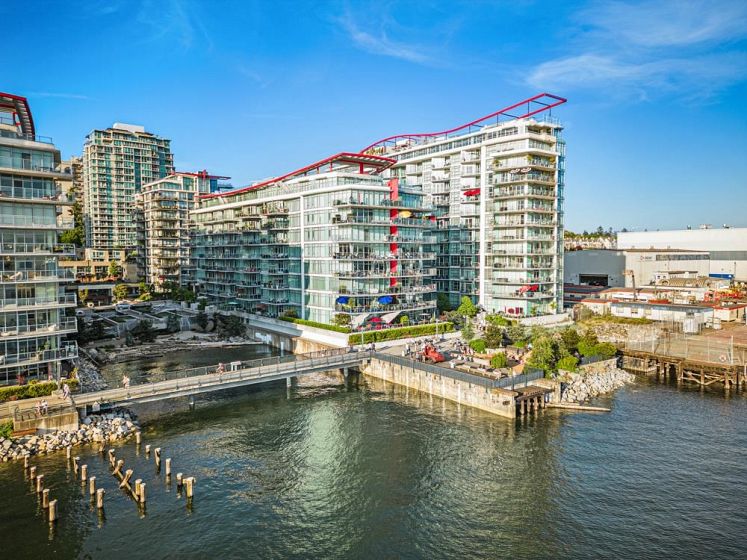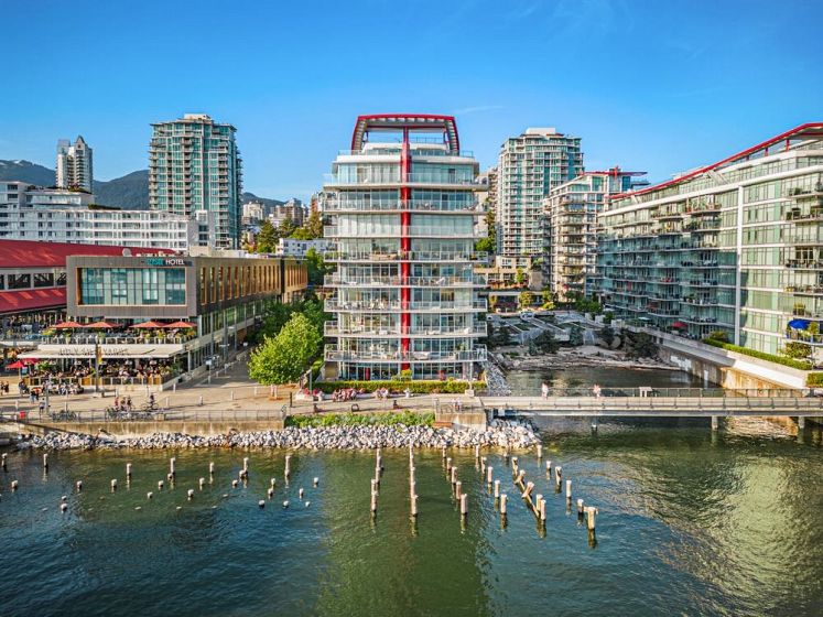 A stunning 2 bedroom, 2 bathroom, + Den WATERFRONT unit located in the HEART of Lower Lonsdale. This Waterfront condo boasts beautiful views of the water, while your large balcony overlooks the private beach! Featuring 9 foot ceilings, air conditioning, hardwood flooring, and high-end appliances, this unit is the definition of luxury waterfront living. Owners get special VIP privileges at the Pinnacle hotel, including access to an indoor pool, steam room, sauna, jacuzzi, and a fully equipped gym. There is direct access to the waterfront by a private beach between the twin buildings. Walking distance to the Shipyards..restaurants, shops and cafes right next door.