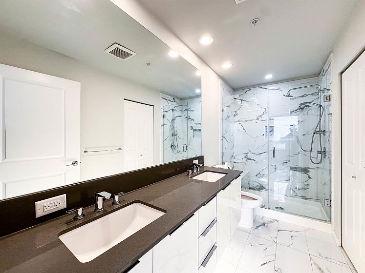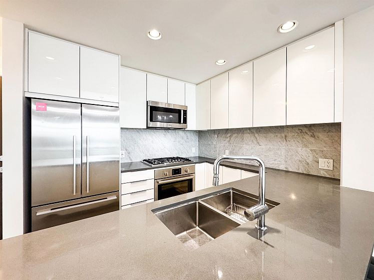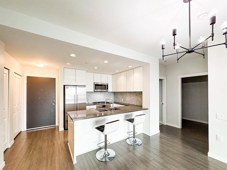 Welcome to R+R by Polygon in the heart of the River District. This bright 961 sqft home features an open layout with in-floor radiant heating, laminate flooring, and a modern kitchen with stainless steel appliances, gas stove, and quartz island. The spacious primary bedroom includes a walk-in closet and a double-sink ensuite. Pet-friendly building with gym, parking, and a double-sized storage locker. Steps to riverfront trails, parks, Save-On-Foods, restaurants, and more.