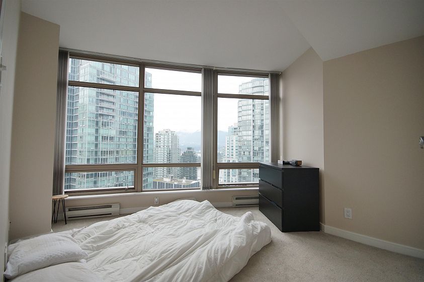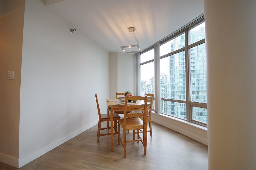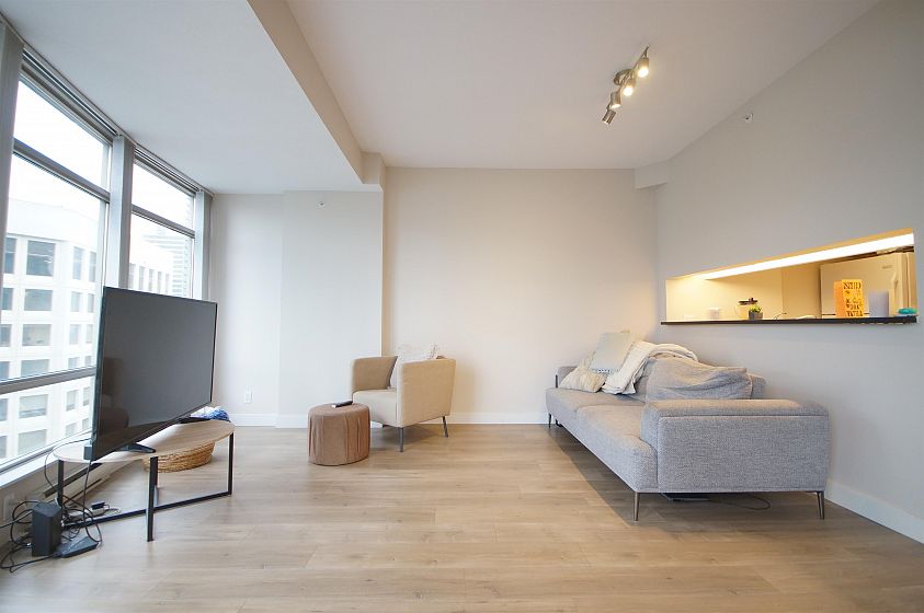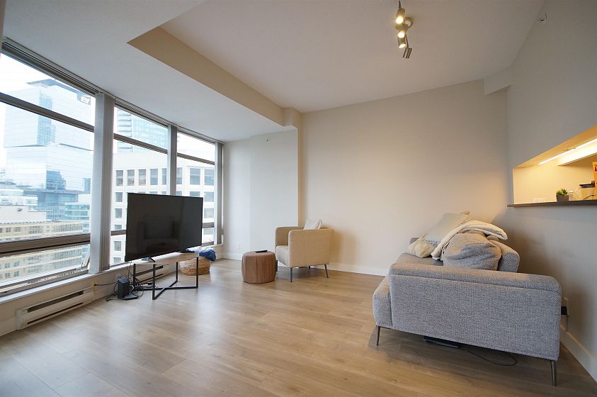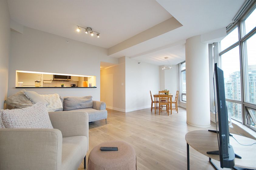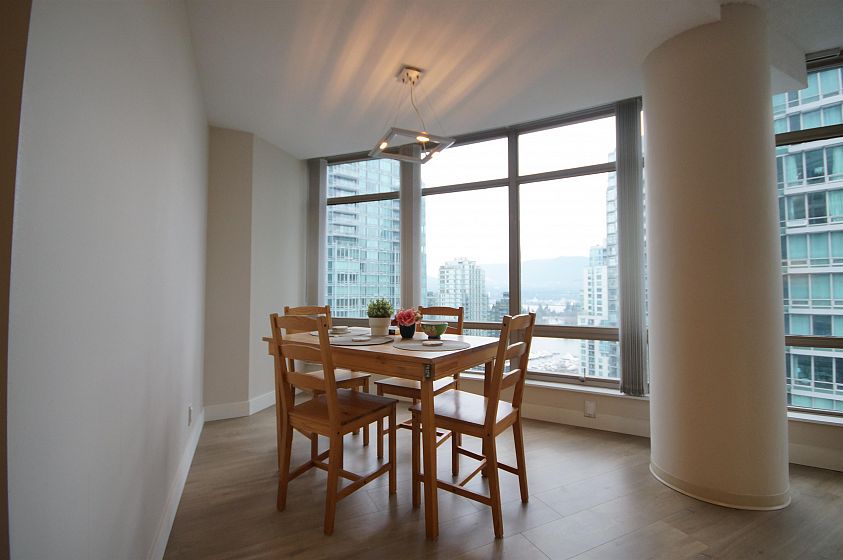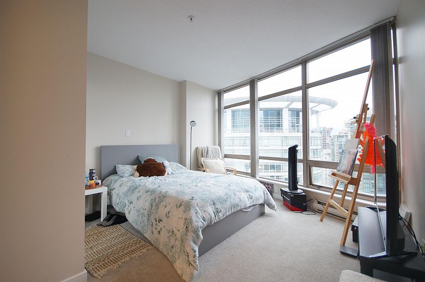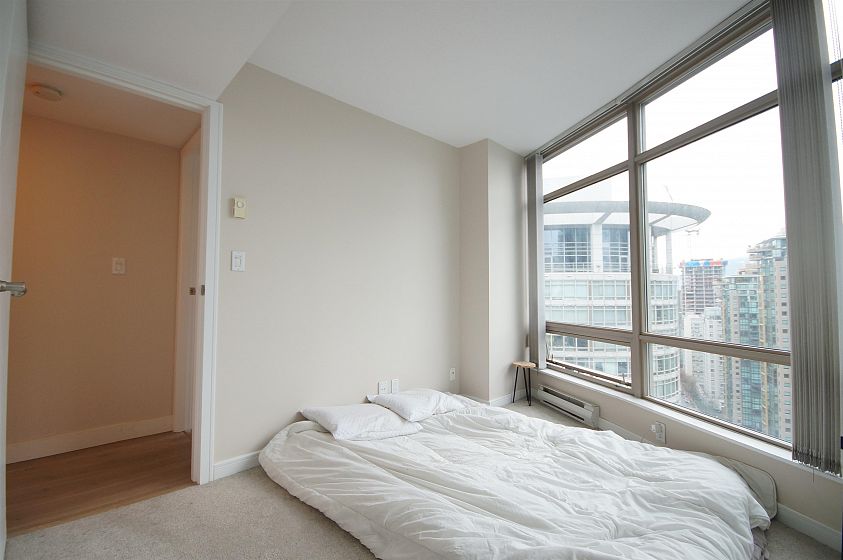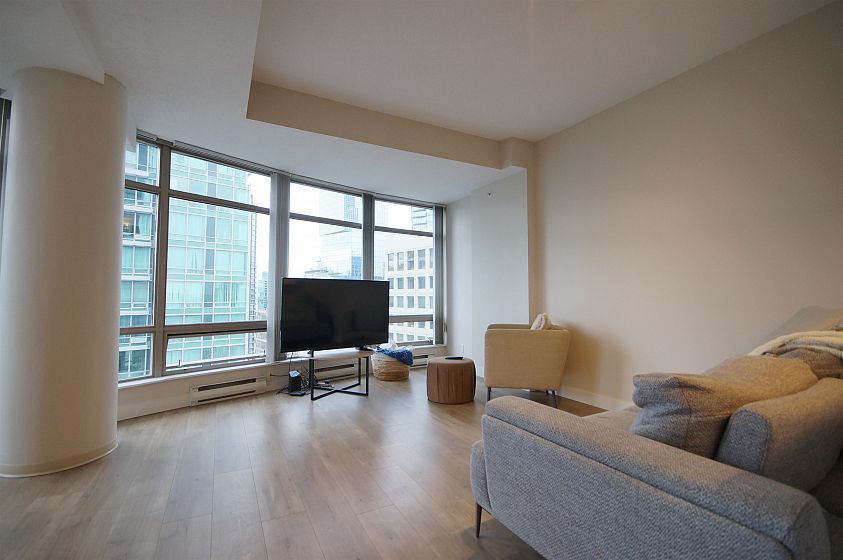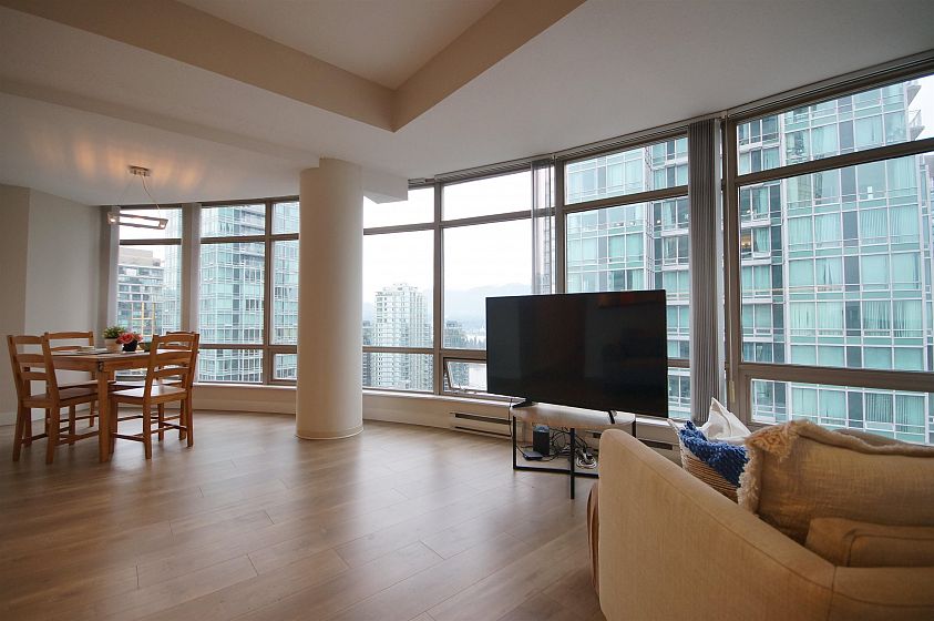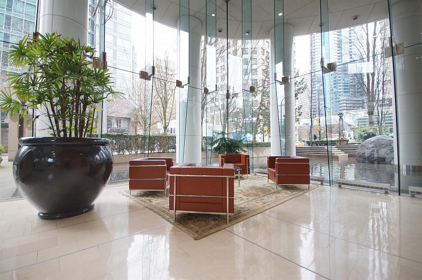 The Palisades located on Alberni Street is located walking distance to Robson Street shopping, restaurants, Stanley Park, Marinas and more! This 888sqft corner 2-bed, 2-bath + den has much to offer! The open living and dining room has a curved floor-to-ceiling window for a great view of Coal Harbour and some water view. The kitchen features white cabinets, granite countertops with a pass through window. The bedrooms are both decently sized with carpets. Building features 24-hr concierge, exercise room, library, meeting room, elegant lobby with koi pond, and Japanese inspired Zen Garden. 1 parking and 1 storage locker included.