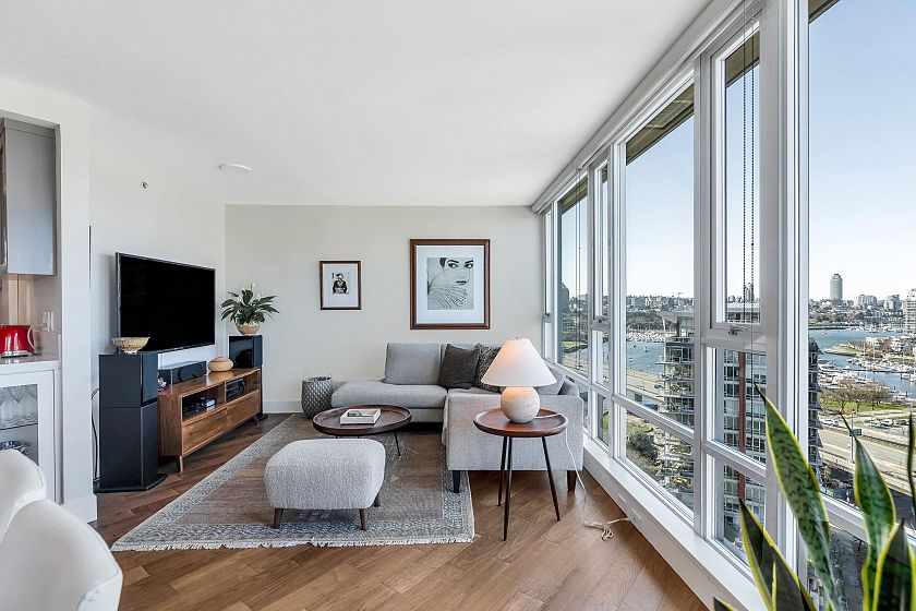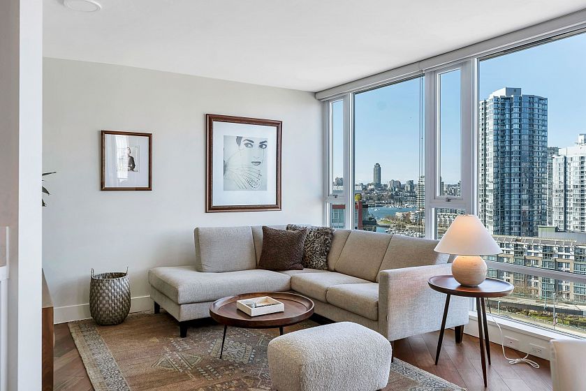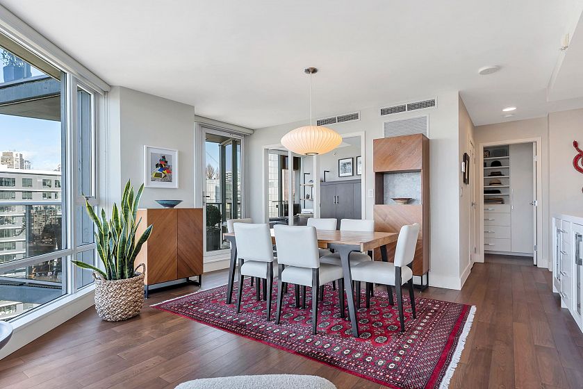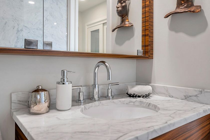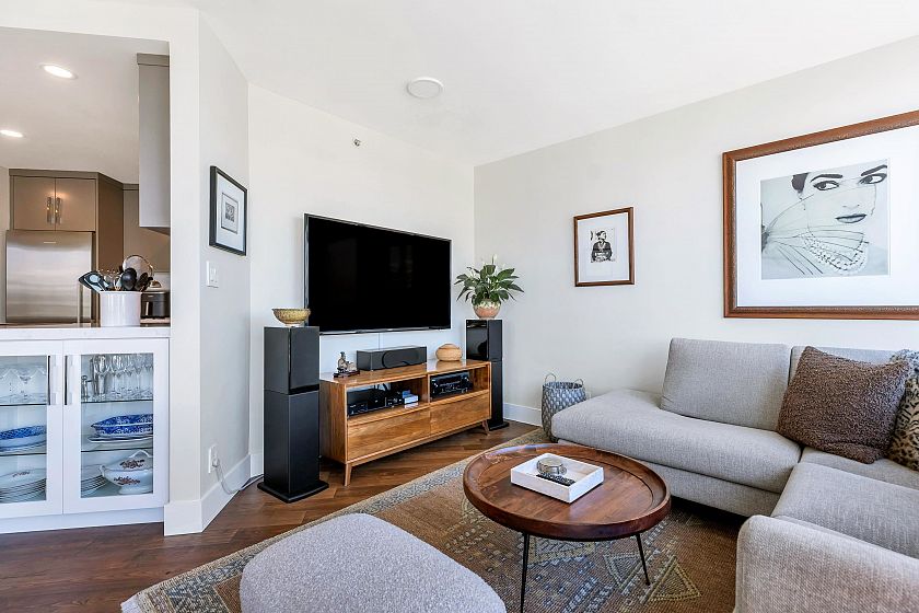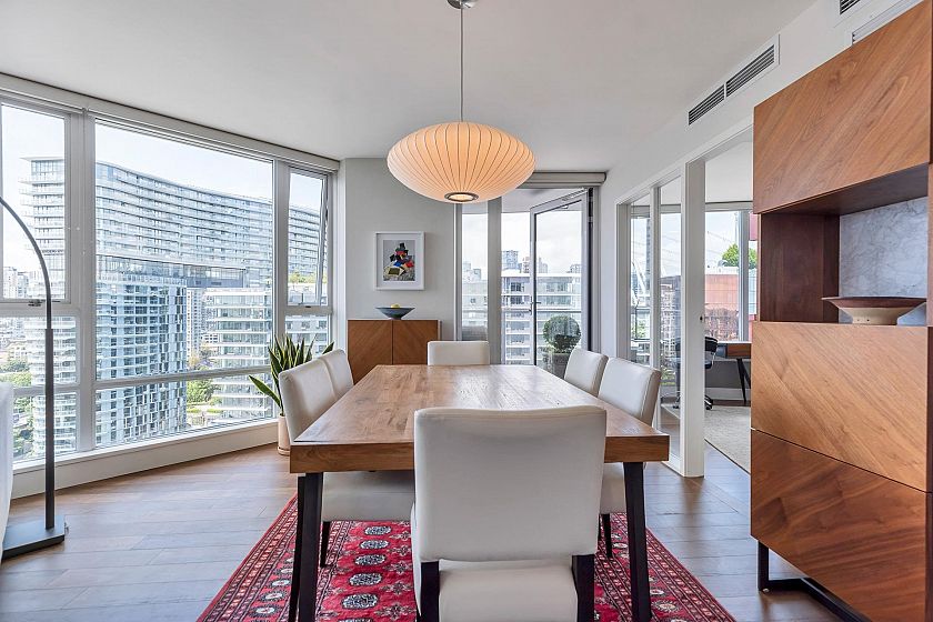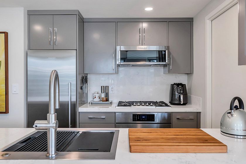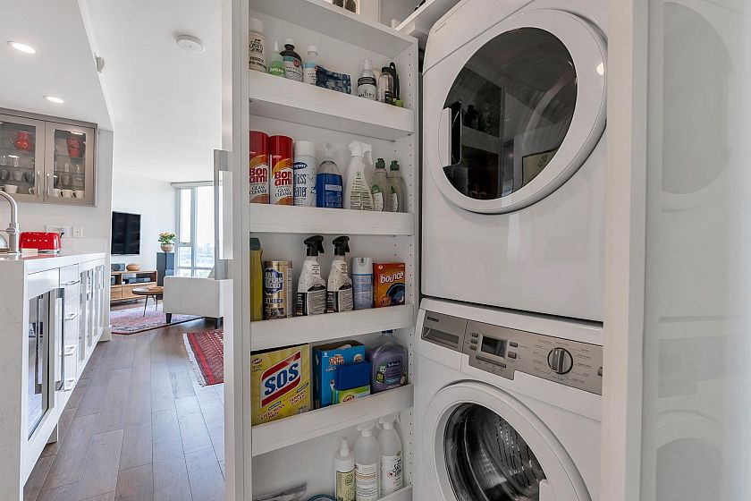 EXECUTIVE 2 bed home fully renovated to exacting standards, waterviews and aircondition! Every nook of this home has been thoughtfully upgraded, and optimized for storage. Massive kitchen with modern matte grey cabinetry and waterfall quartz countertops. Dual drawer integrated DW & winefridge and highend appliances. Spacious living/dining area opens to patio with views of the marina and sky line. Large primary with additional built in closets/organizers. SPA bath with JETTED tub, marble tile, and walnut vanity. Extra large den could easily be a 2nd bedroom. Excellent amenities include a concierge, pool, gym, bowling alley, and movie theatre.