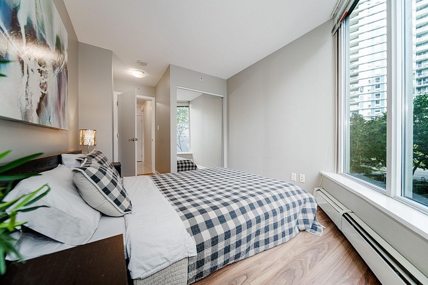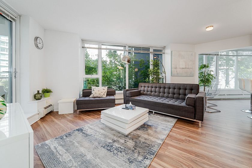 Exceptional, one-of-a-kind, 2-bedroom corner unit located on the third floor with views of the private gardens and tranquil water features right outside your window. Nestled on the quiet side of the building, this home provides a serene escape from the city. A spacious open-concept kitchen that seamlessly flows into the living area, perfect for entertaining. The unit boasts two bedrooms, a solarium, and convenient in-suite storage, making it an ideal sanctuary for both relaxation and functionality. This unit comes fully furnished, providing a seamless transition into your new home. Previously rented on a short-term basis through a reputable local management company, it is a perfect turnkey solution. Comes with 1 parking & in-suite storage.