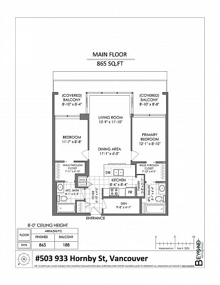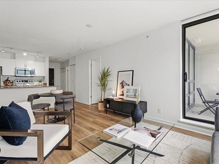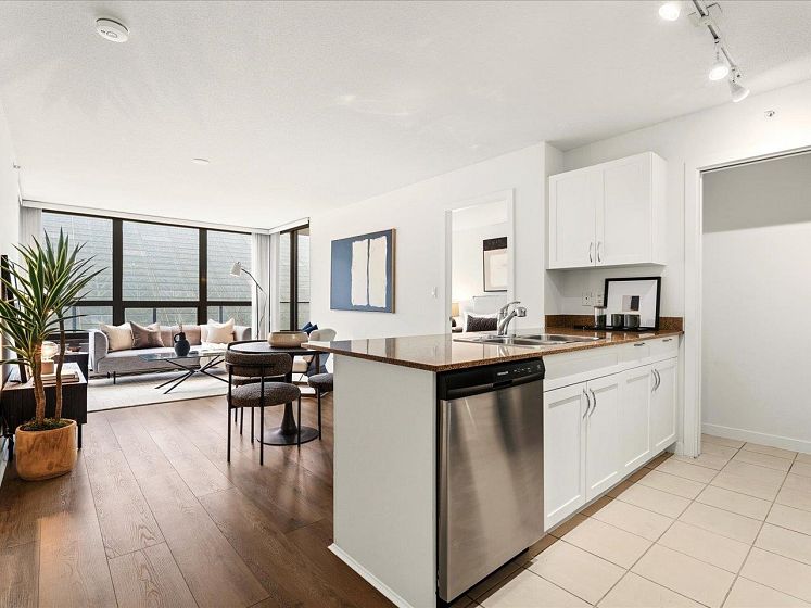 Welcome to this beautifully updated 2 bed, 2 bath residence in the heart of DT Vancouver. Offering 865sqft of well-designed living space, this bright & functional home features brand new LVP flooring & a thoughtful layout w/ excellent bedroom separation for added privacy. The open-concept living & dining area flows seamlessly onto a spacious 188sqft balcony—perfect for morning coffee, outdoor dining, or entertaining while taking in the city atmosphere. The kitchen offers generous counter space & storage, ideal for both everyday living & hosting. Complete w/ 1 secure parking stall, this home places you steps from Vancouver’s best restaurants, shopping, entertainment, and transit. Offers as they come.