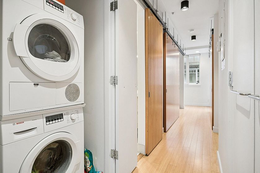 Welcome to the Crandall, a true historic warehouse conversion building in the heart of Yaletown Heritage District. Elegant 2 bedroom, 2 full bathroom open concept loft style home featuring exposed brick walls, metal beams, high ceilings, light oak flooring. Large European Tilt & Turn WINDOWS ON 2 SIDES sides make this a uniquely BRIGHT loft with natural light coming from both East and West plus lovely cross breeze. Entertainers dream featuring a gas stove, Fisher & Paykel appliances & Caesarstone countertops. Storage locker conventiently located on same level as the suite just outside the unit door. 1 underground parking included. Ideal central location just steps to the seawall, shopping, cafes & the city's finest dining establishments. Showings by private appointment.