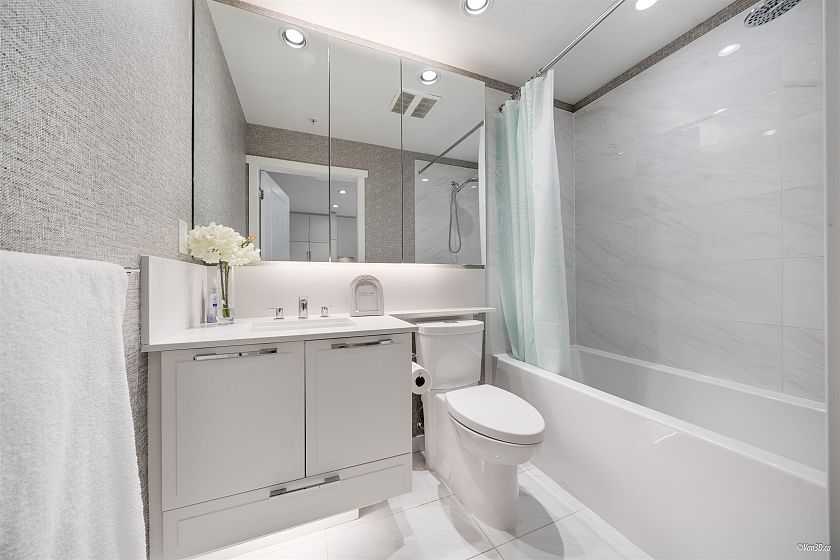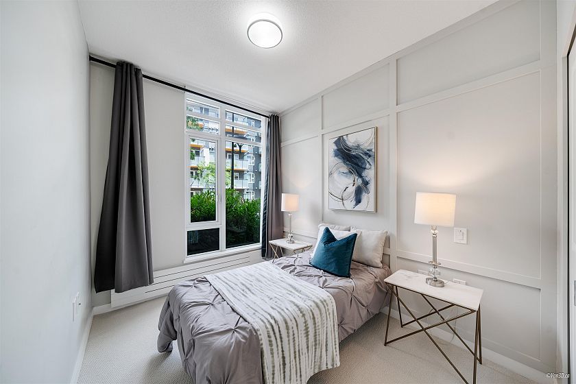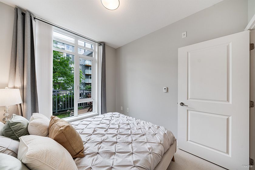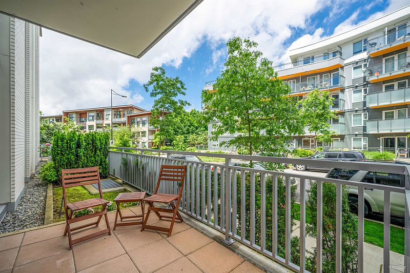 Enjoy a townhouse garden suite-like experience with this showroom worthy 2 bed ground level suite with walk-out patio access. Exquisitely finished in a Polygon-built concrete building, this gem is currently the most affordable 2 bed unit in all of River District! Luxurious features include high ceilings, built-in appliances, wall treatments throughout, private fenced patio with your own unit number and access gate. This is your best opportunity to get into the vibrant River District community and enjoy its trails, parks, community centre, restaurants, cafes, and soon-to-be new schools and daycare! Open houses March 14 and 15, 2pm-4pm.