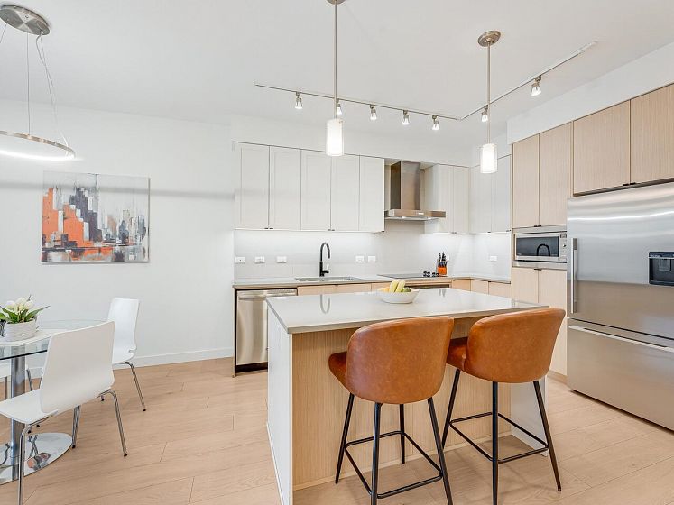 Highly desired Millhouse by Marcon. Spacious 2 Bed+2 Bath+Den home with 9’ ceilings, open plan living, large entertainers’ kitchen, spacious bedrooms each with their own W/I closet, large ensuite with dual sinks, a walk-in shower & storage. The den is large & can function as a 3rd room. Lots of great storage throughout the suite. The outdoor patio is fully fenced and gated for your privacy and pet. The suite is located well off Mountain Hwy in a quiet area of the complex. Pet friendly (2 dogs/cats ok), large roller style storage locker, dog wash, fantastic amenity room. 2 side-by-side parking stalls with plug in capability, (strata approval needed $40/month) wow! The suite is immaculate! You are in the heart of Lynn Valley. Unbeatable location. *****OPEN SAT, MAR 14th, 2-4pm*****