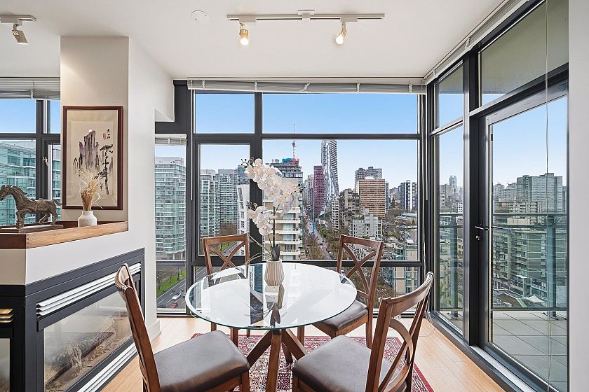 Rare Water-Front unit, right beside Stanley Park. Welcome to “Lumiere Residences”! This bright corner unit offers 2 bedrooms, 2 bathrooms plus a den, along with 1 parking and 1 storage locker. Your luxury living just steps from Stanley Park and Robson Street. Thoughtful layout, bedrooms on opposite sides for added privacy. Featuring floor-to-ceiling windows with stunning water views, a double-sided fireplace, California shutters, granite countertops, Bosch appliances, and air conditioning for year-round comfort. Various amenities include concierge, gym, steam rooms, lounge, billiard room, bike storage, and secure visitor parking. Located in the Prime Coal Harbour location near parks, cafés, and boutique shopping. Do Not miss out! Pleasure to show!