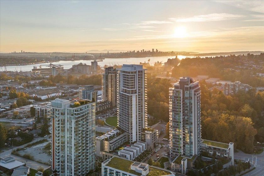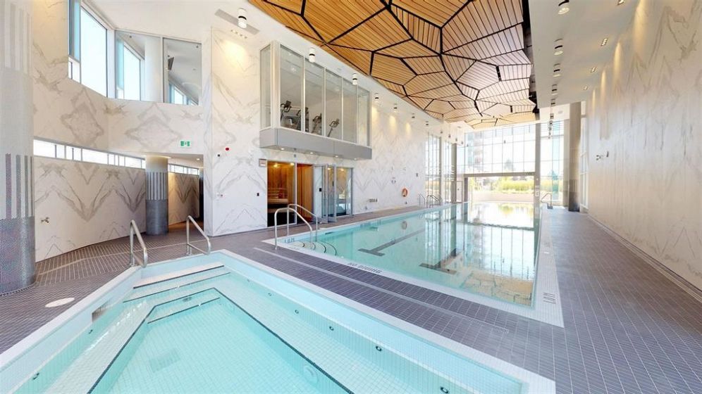 RARE, sun-drenched CORNER 2 bed + den home featuring an EXPANSIVE private terrace with panoramic city & ocean views —perfect for relaxing or entertaining! Chef-inspired kitchen with full ss appliance package, quartz waterfall island and sleek modern finishes. Home comforts include: floor-to-ceiling triple-glazed windows, A/C, custom built closet organizers & automatic remote blinds. Residents enjoy full access to the exceptional amenities at the Denna Club including pool, hot tub, sauna, steam room, and fitness centre. Just steps to parks, trails, shops, and easy access to downtown Vancouver—the best of North Shore living!
