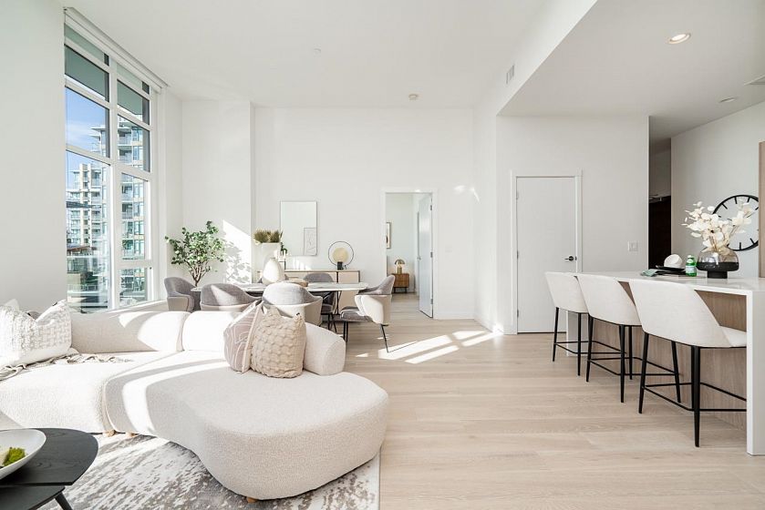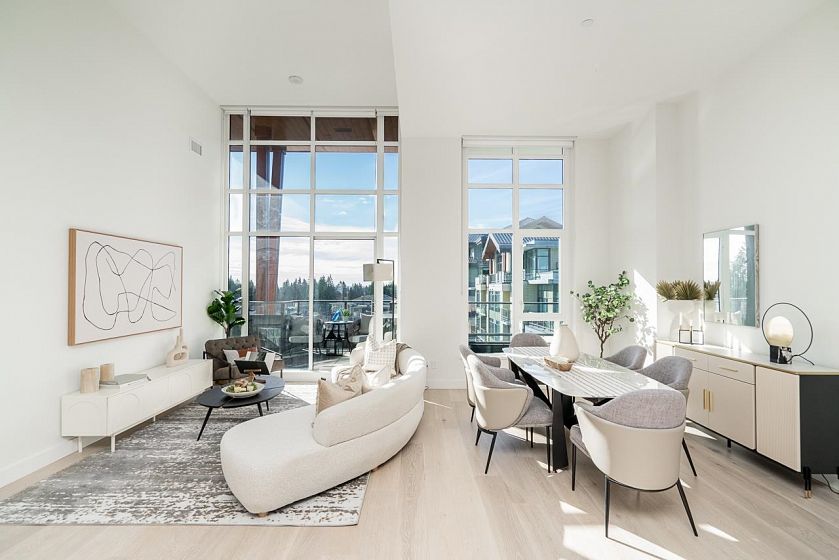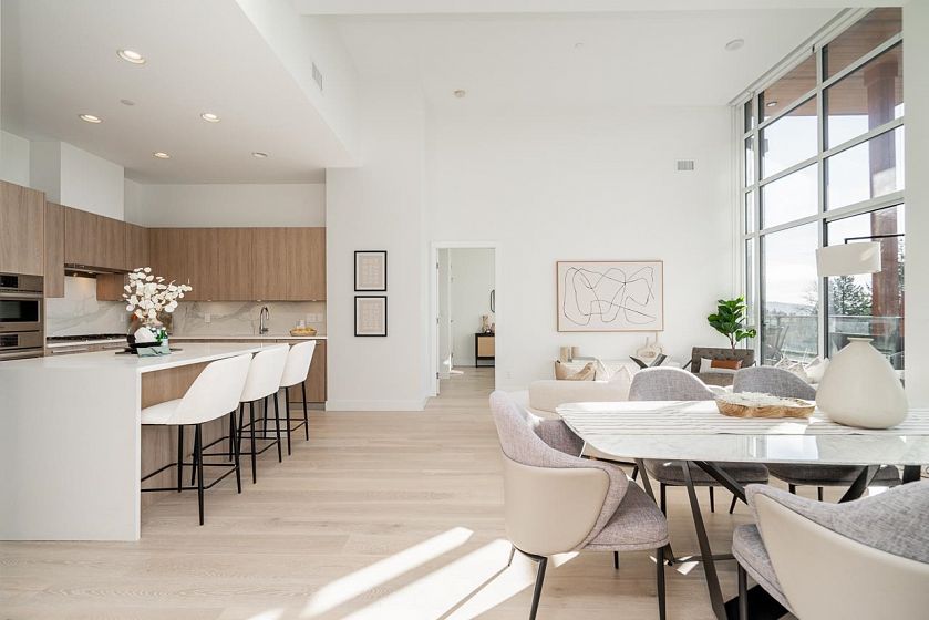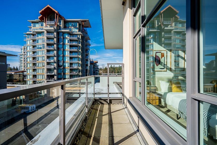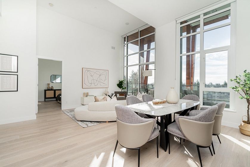 Downsizing Dream! A rare penthouse at Residences at Lynn Valley by Bosa, offering space, comfort, and ease ideal for those coming from dettached. This bright home features 2 spacious bedrooms with over-height soaring ceilings, 2 full ensuite bathrooms plus a powder room, and central A/C. The chef’s kitchen with premium BOSCH appliances opens to an expansive living area and large deck where you can relax and enjoy stunning sunsets. South-facing windows and ceilings up to 13'8" flood the home with natural light, creating an openness rarely found in condo living. Located in the heart of Lynn Valley Town Centre, just steps to shops, services, and daily conveniences. Includes 2 parking stalls and a large storage locker. Showings by private appointment, contact your realtor today!