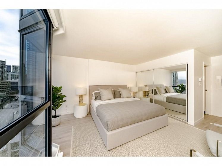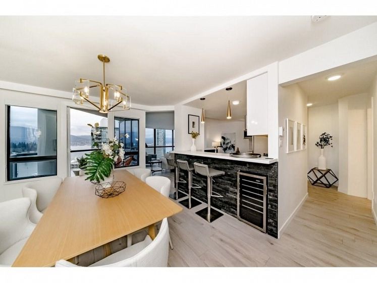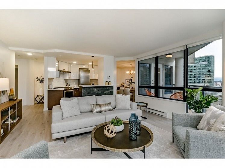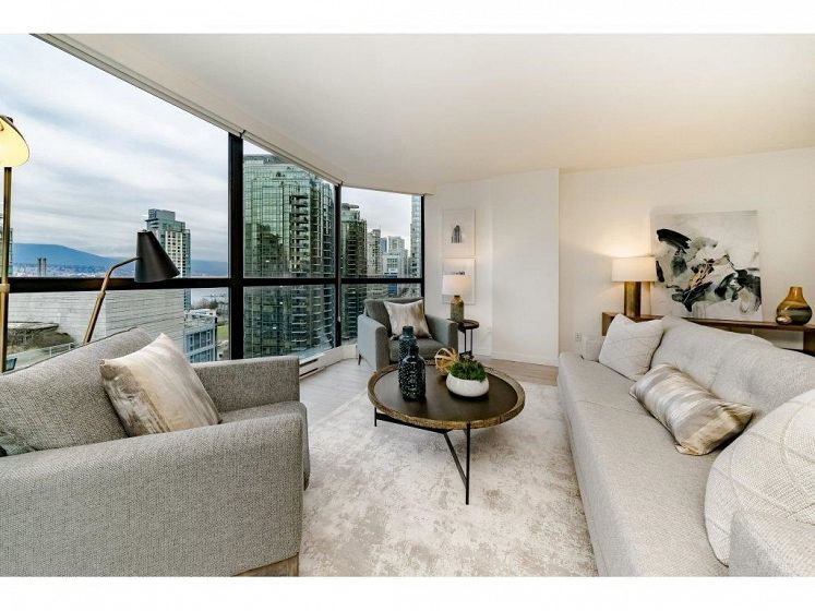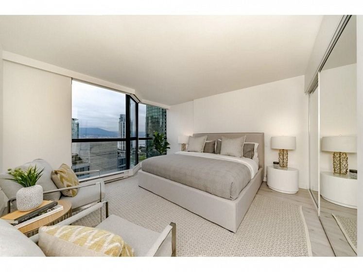 Welcome to the Palais Georgia in Coal Harbour. Well laid out functionally useable 1252 square foot two bedroom , two bath tastefully renovated view home. The unit is finished with high end stainless steel appliances ,wine fridge, a gas range, quartz counter tops, open bar and separate island. Large size washer and dryer and pantry space. Beautiful view and lots of natural light flow through this unit. The unit comes with 1 parking and no Pets allowed.