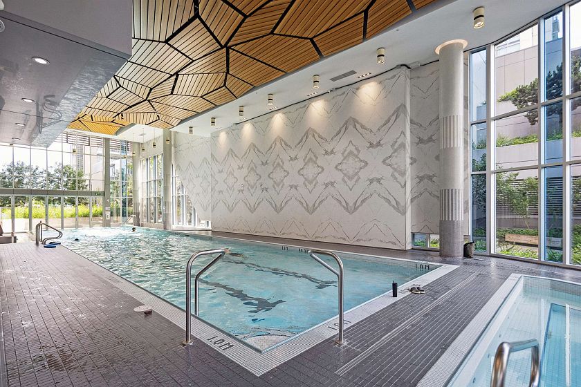 Welcome to Unit 1203, where city living meets the outdoors. This 2-bedroom corner home is ideal for professionals, couples, or first-time buyers seeking comfort, light, and lifestyle in the heart of North Vancouver. Enjoy morning coffee and evening sunsets from your balcony, with trails, shops, and everyday conveniences just steps away. Inside, the home features a modern layout with abundant natural light, quartz countertops, and a 4-pipe heating and cooling system for year-round comfort. Residents enjoy access to exceptional amenities including a swimming pool, steam room, sauna, fully equipped gym, lounge, and more. Located in North Vancouver’s tallest tower, the home also includes 1 parking stall, 1 storage locker, and 5 high-speed elevators—urban living surrounded by natural beauty.